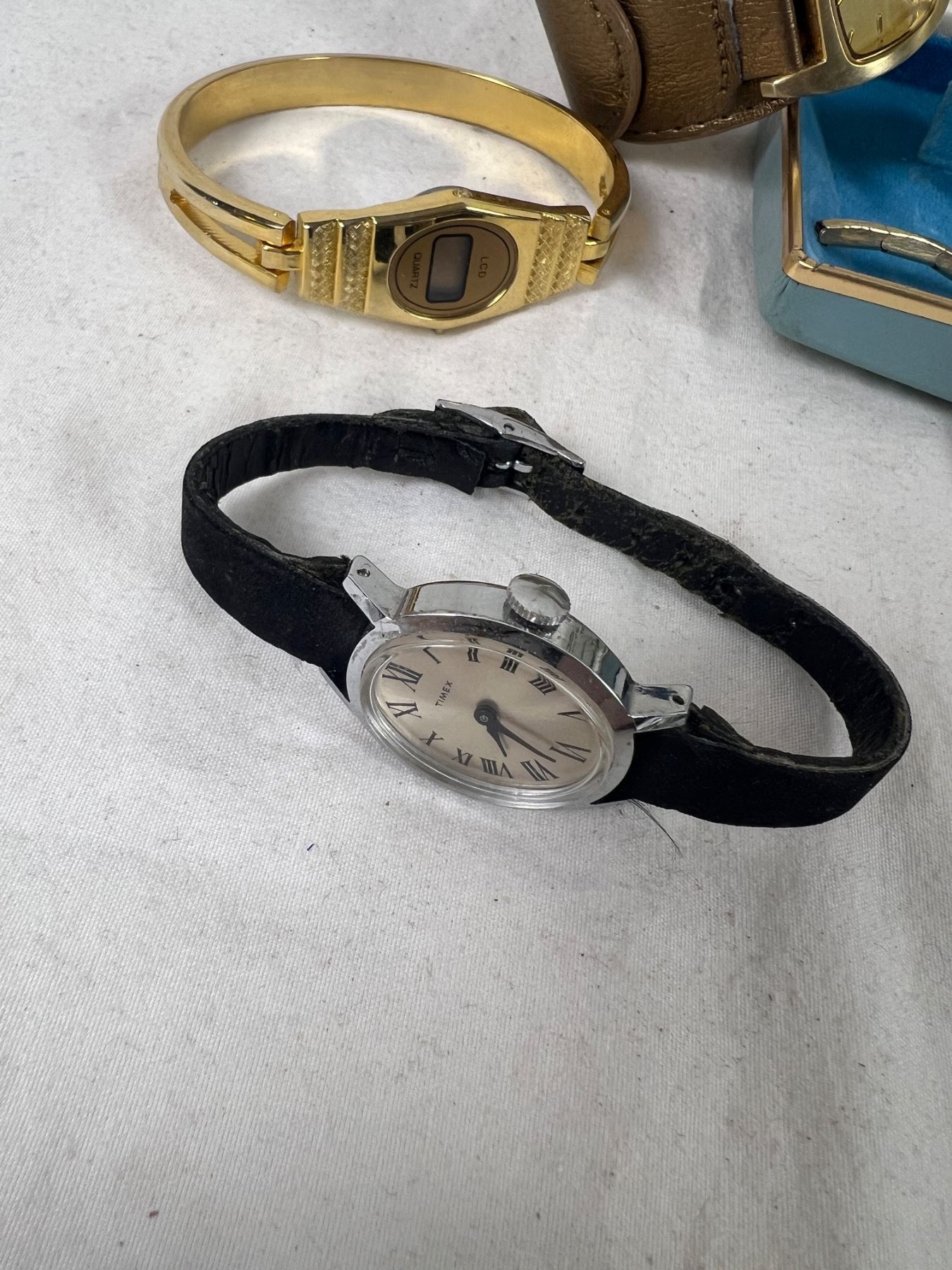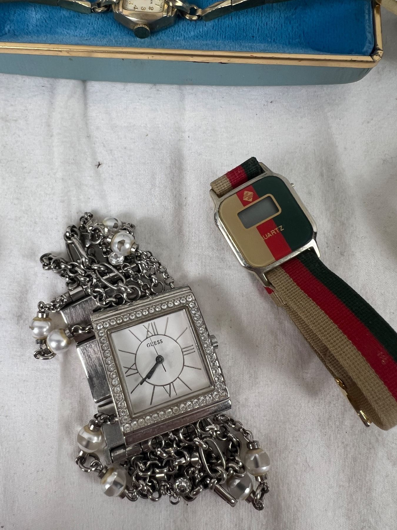 Variety of brands but highlights include: Guess, Bulova, Timex and more! Unknown if watches are functional. Bulova watch appears to have damaged band.