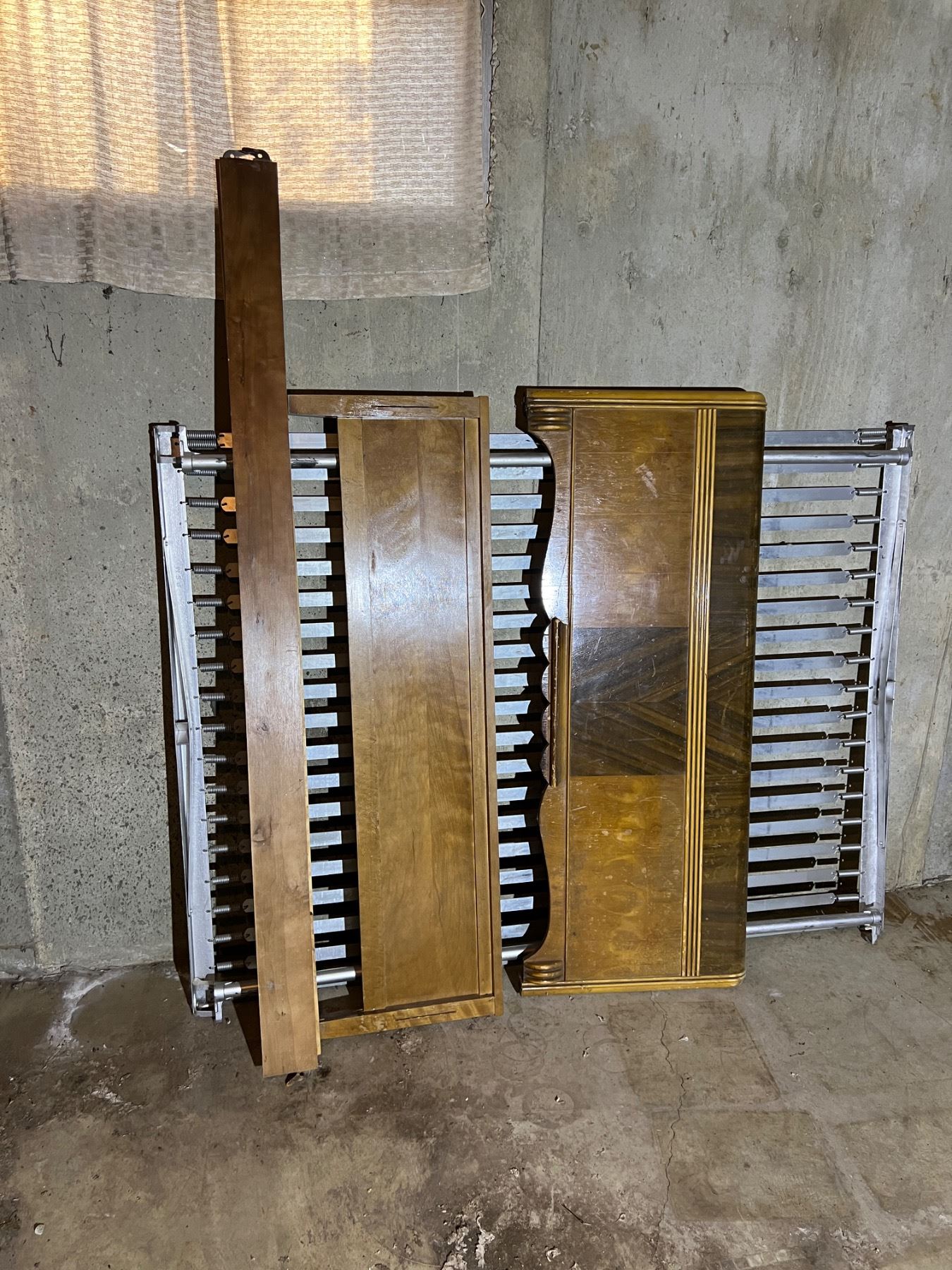 Includes head and baseboard as well as side boards. Likely double possibly queen. Measures 52" across and 72" tall
