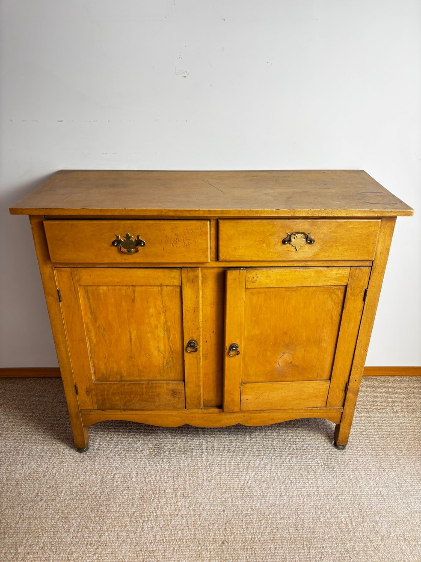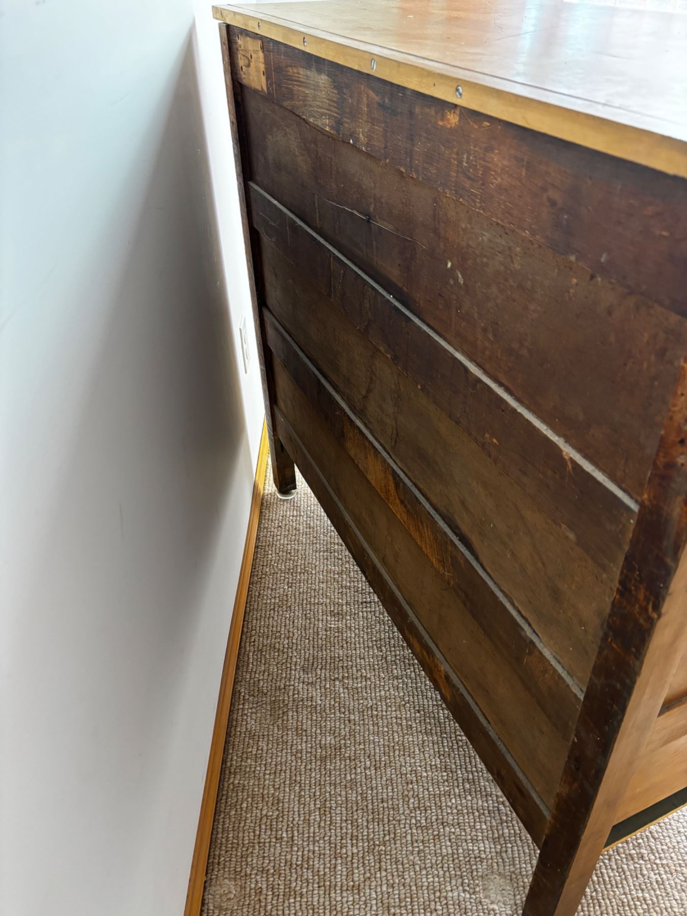 Missing a wooden piece of trim on the left side, wear and tear, 44"L x 18"W x 39"H