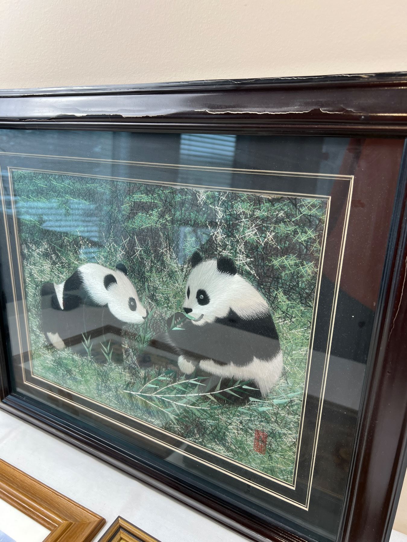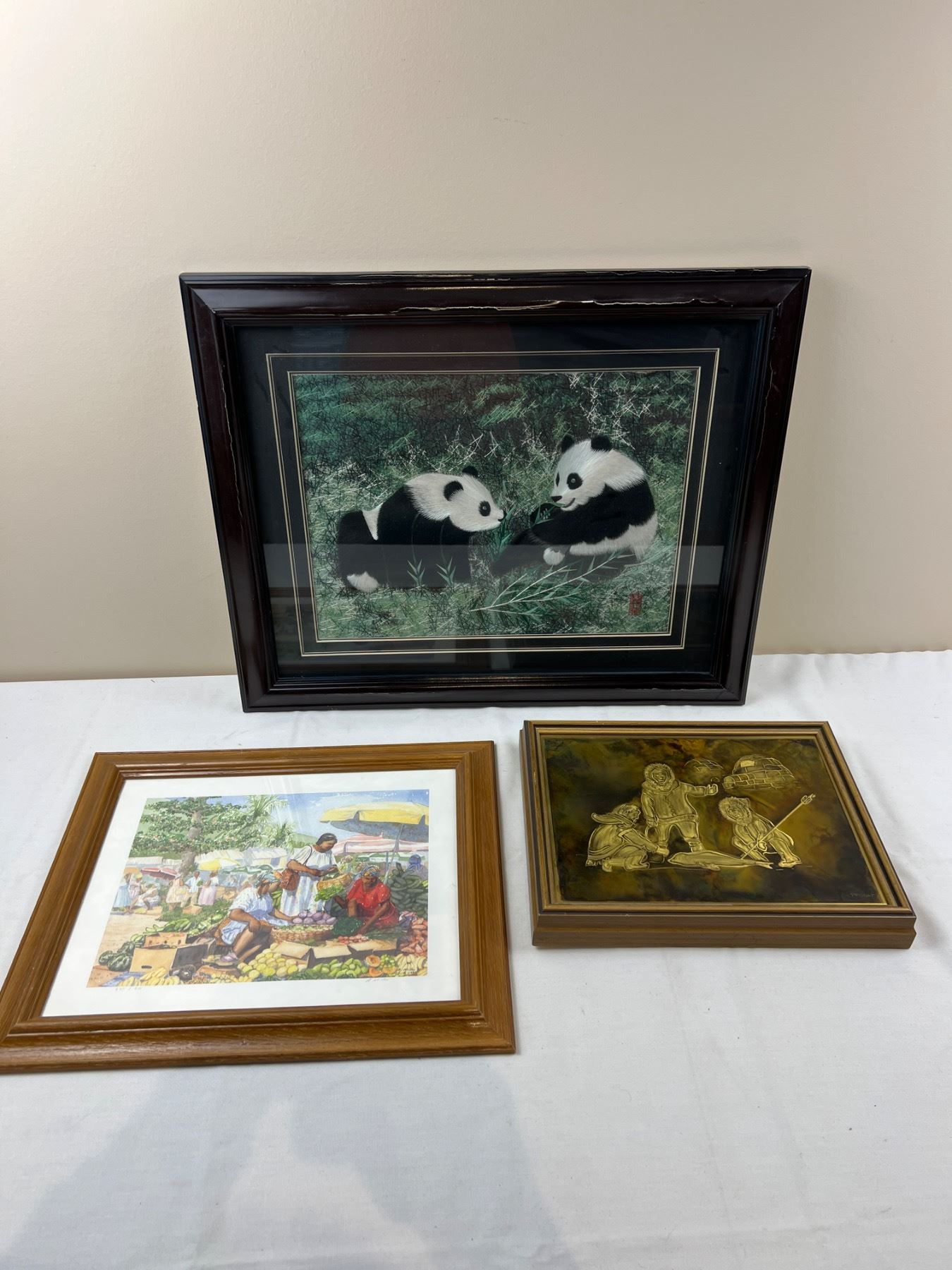 Includes, "Our Native Land" by Priddat, A.Miller Print No 645/950, Panda art (23x19") frame has cracks in the paint