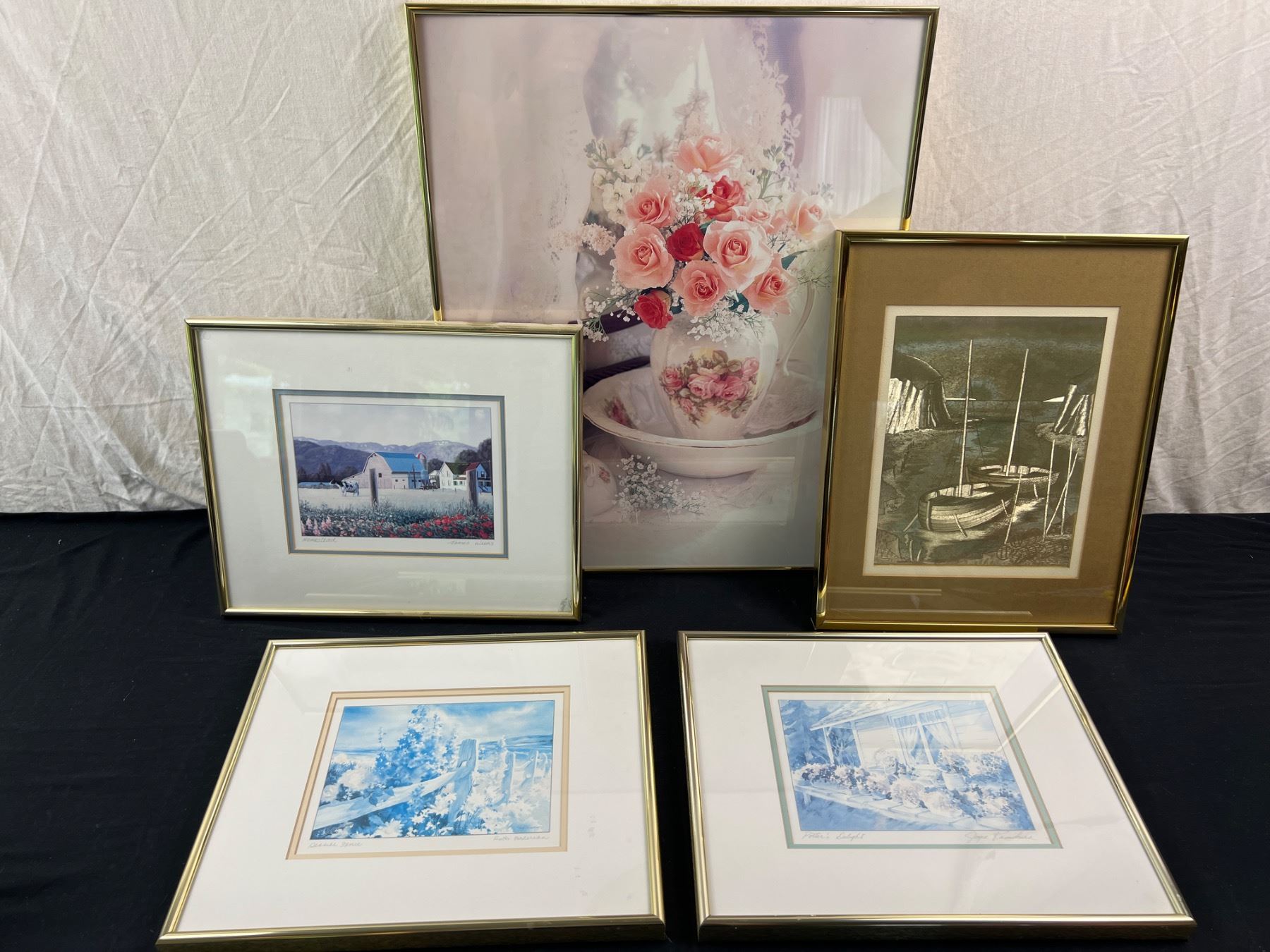 Includes artists like Ruth Baderian, James Weiss, Joyce Kamikura (has a small crack in the corner of the glass), and more, Largest frame is; 16x20"