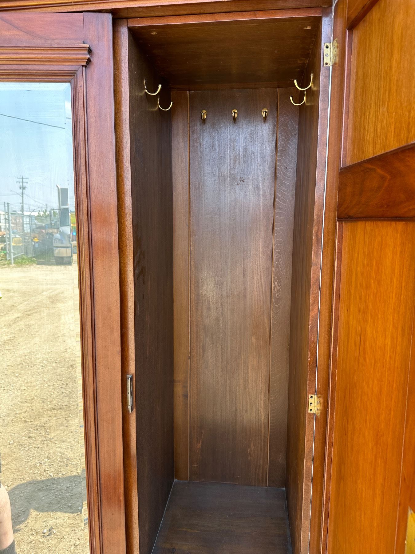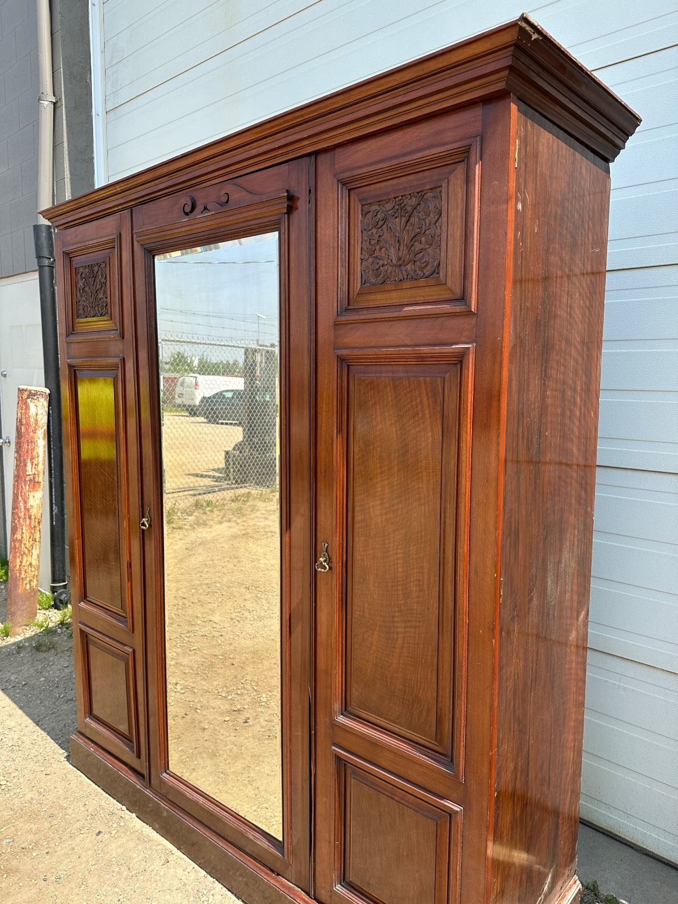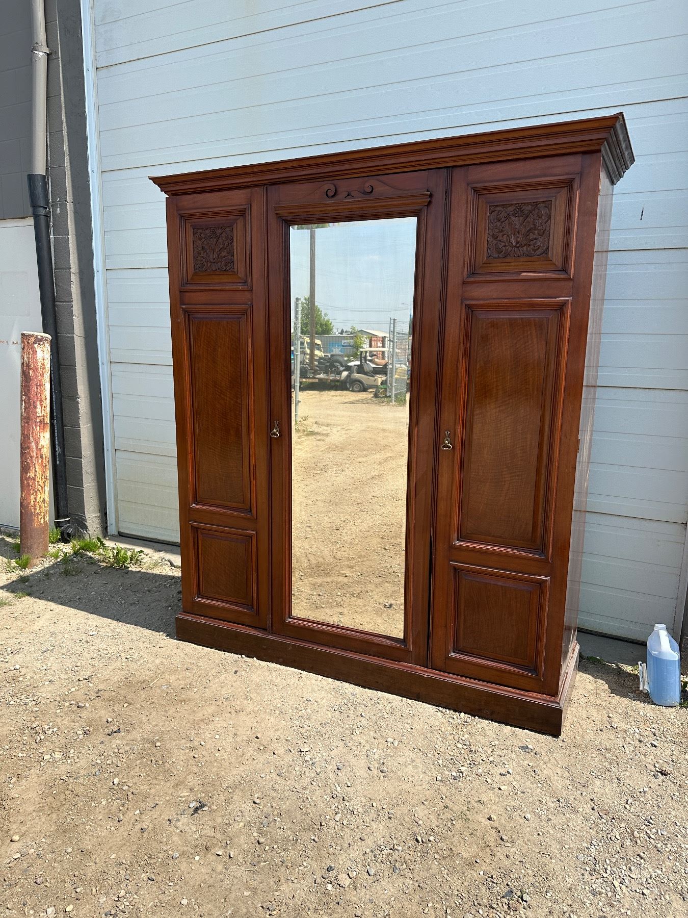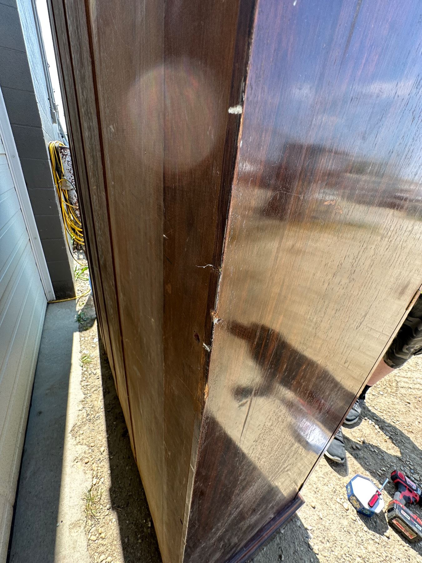 Has drawers - has scuffs, scratches and chips - disassembled for transport - 69.5" wide x 24.5" deep x 7' tall