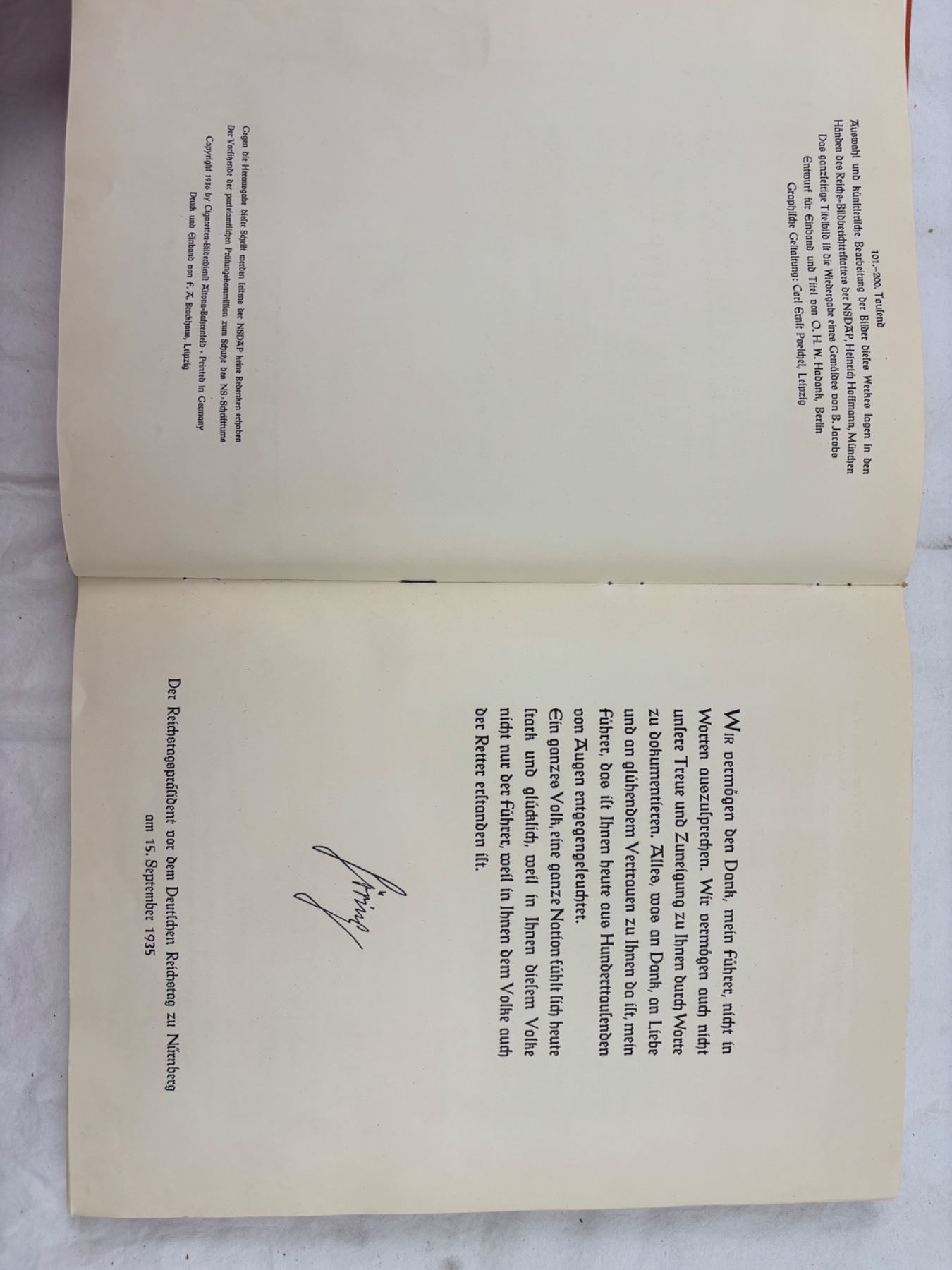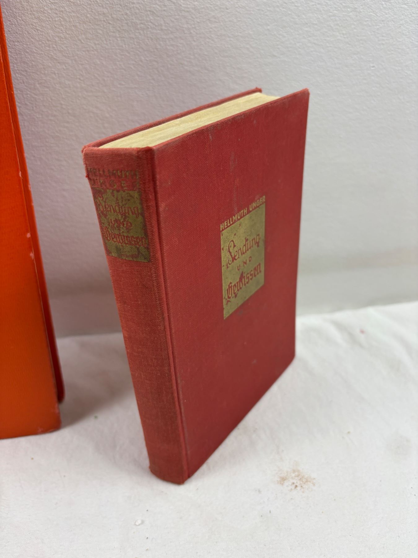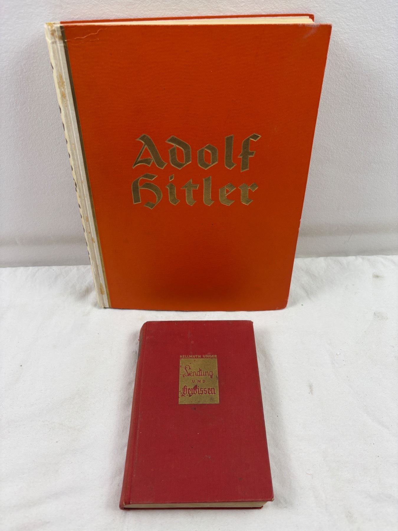 Adolf Hitler Bilder "Aus Dem Leben Des Fuhrers" Copyright 1936, Hellmuth Unger "Sendung und Gwissen" Copyright 1936, Some small stains and wear to the covers of both books.