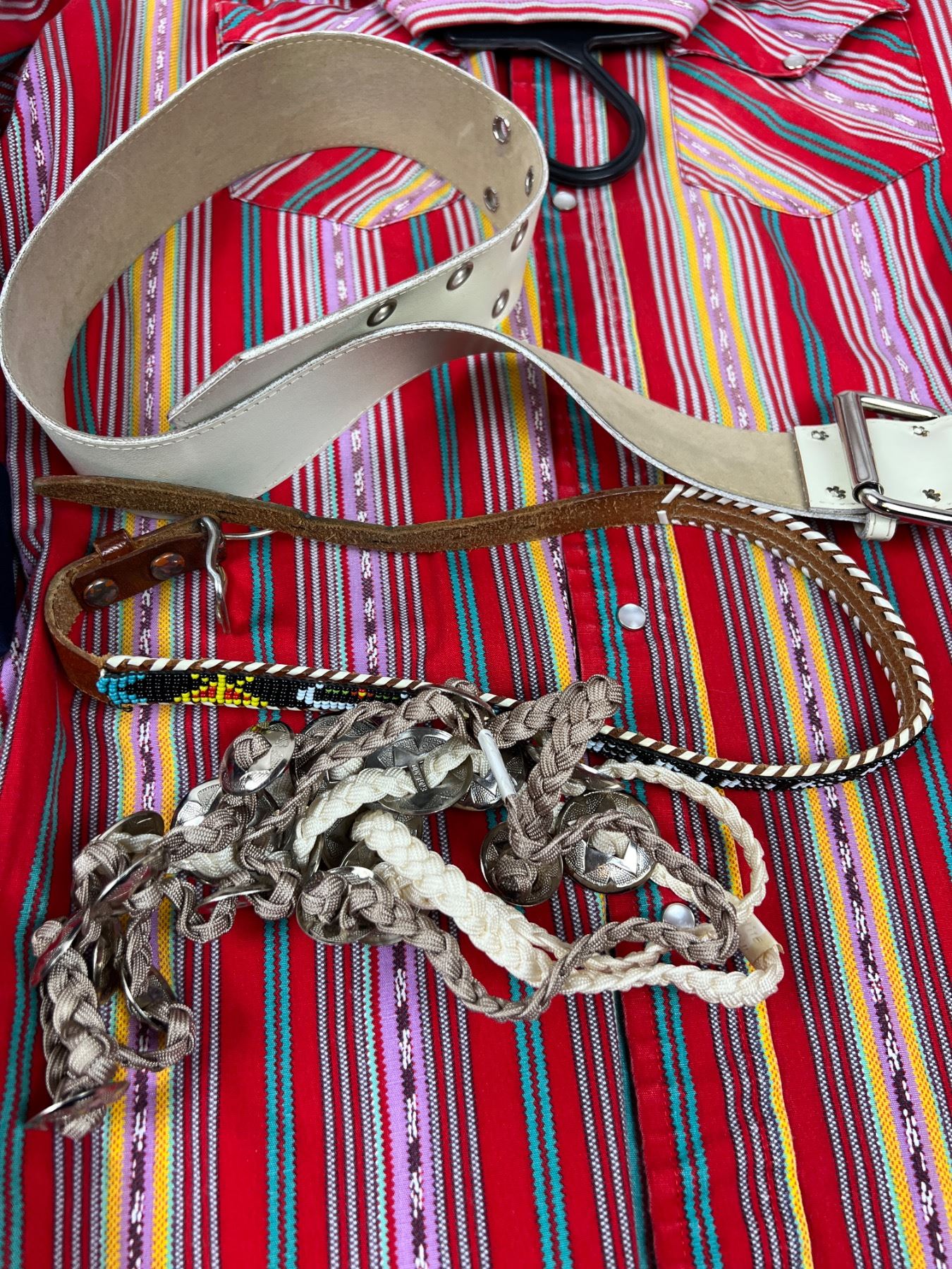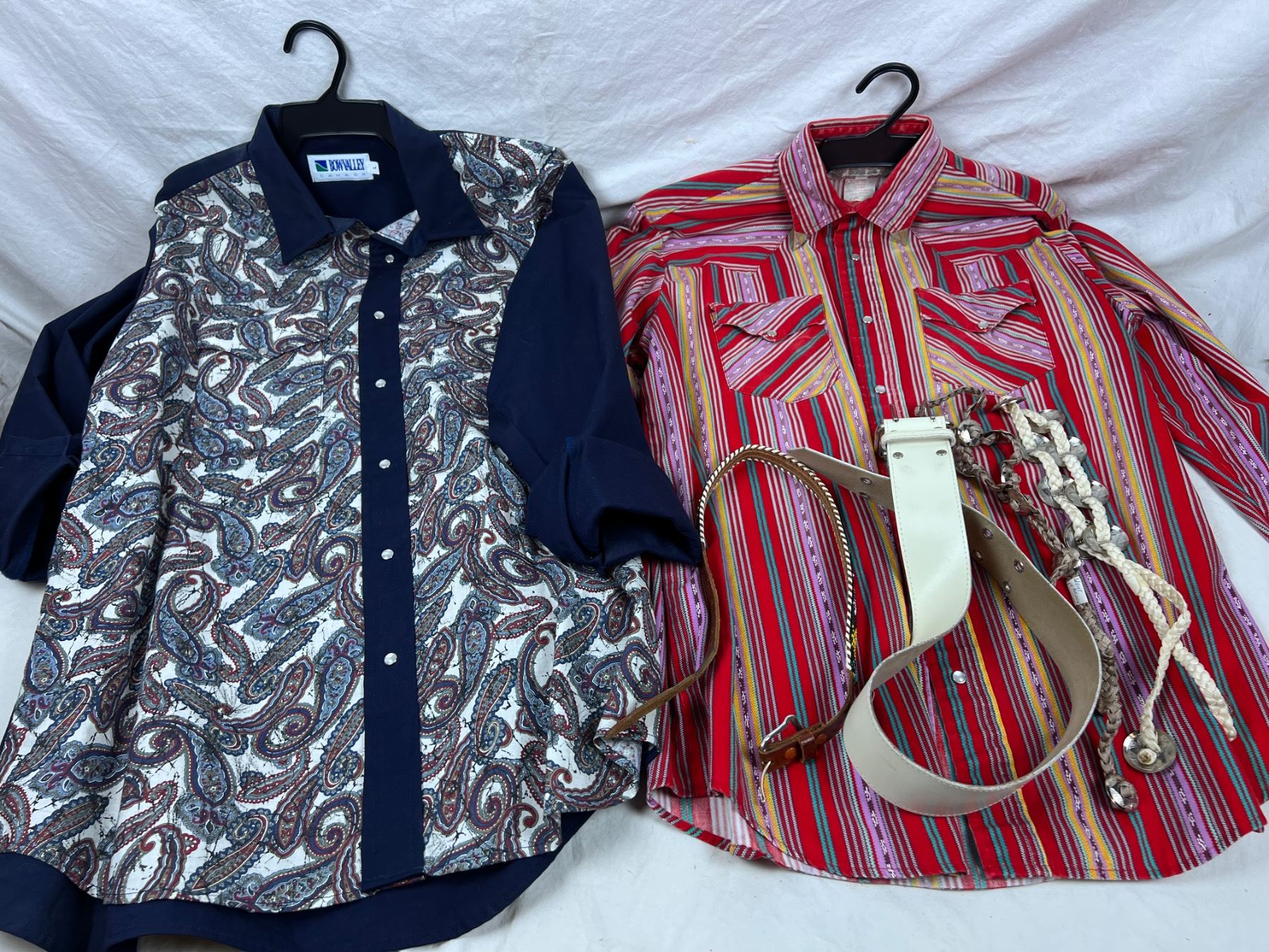 Includes a size Large and Medium button-up shirt, belts, and more