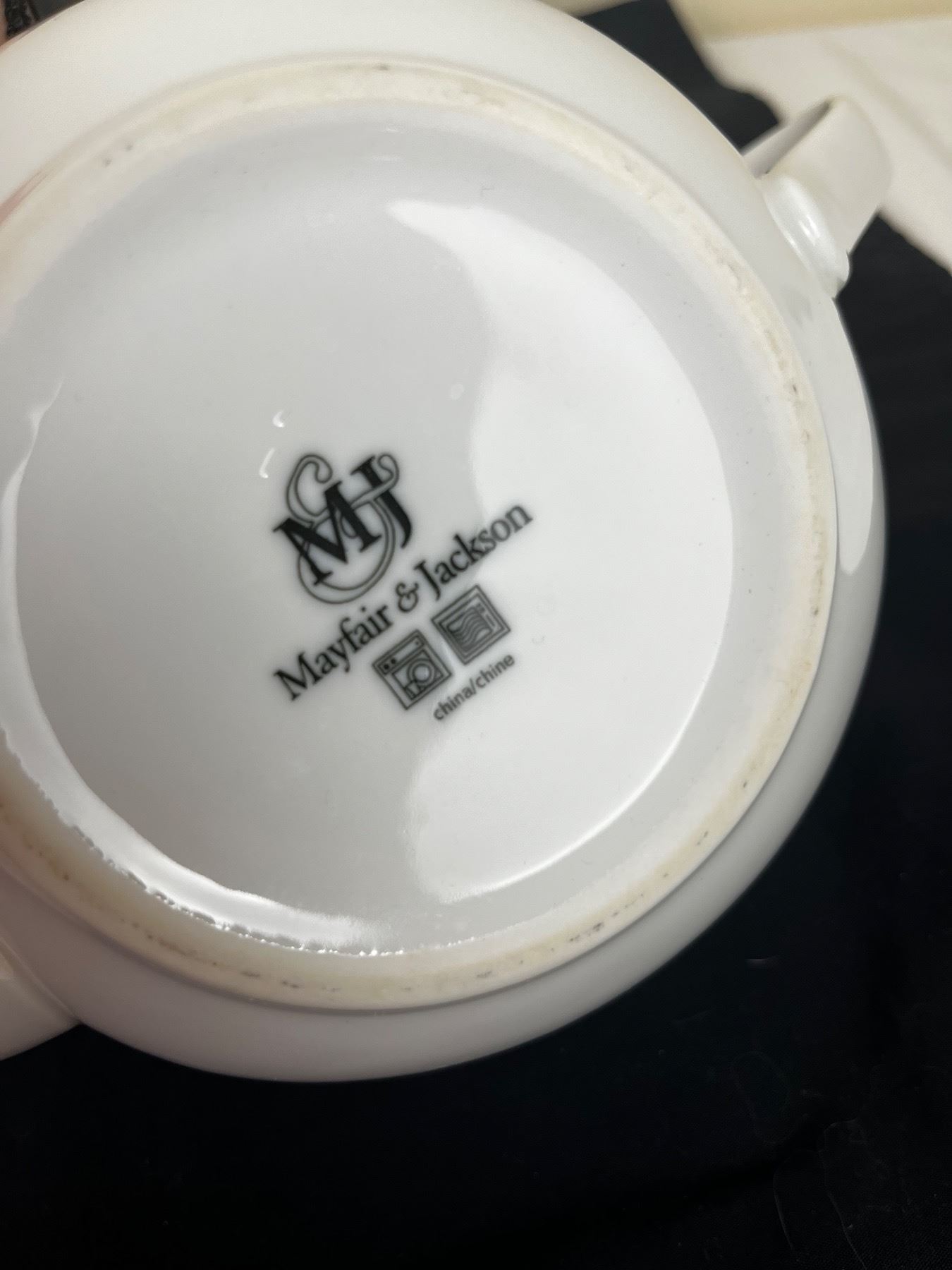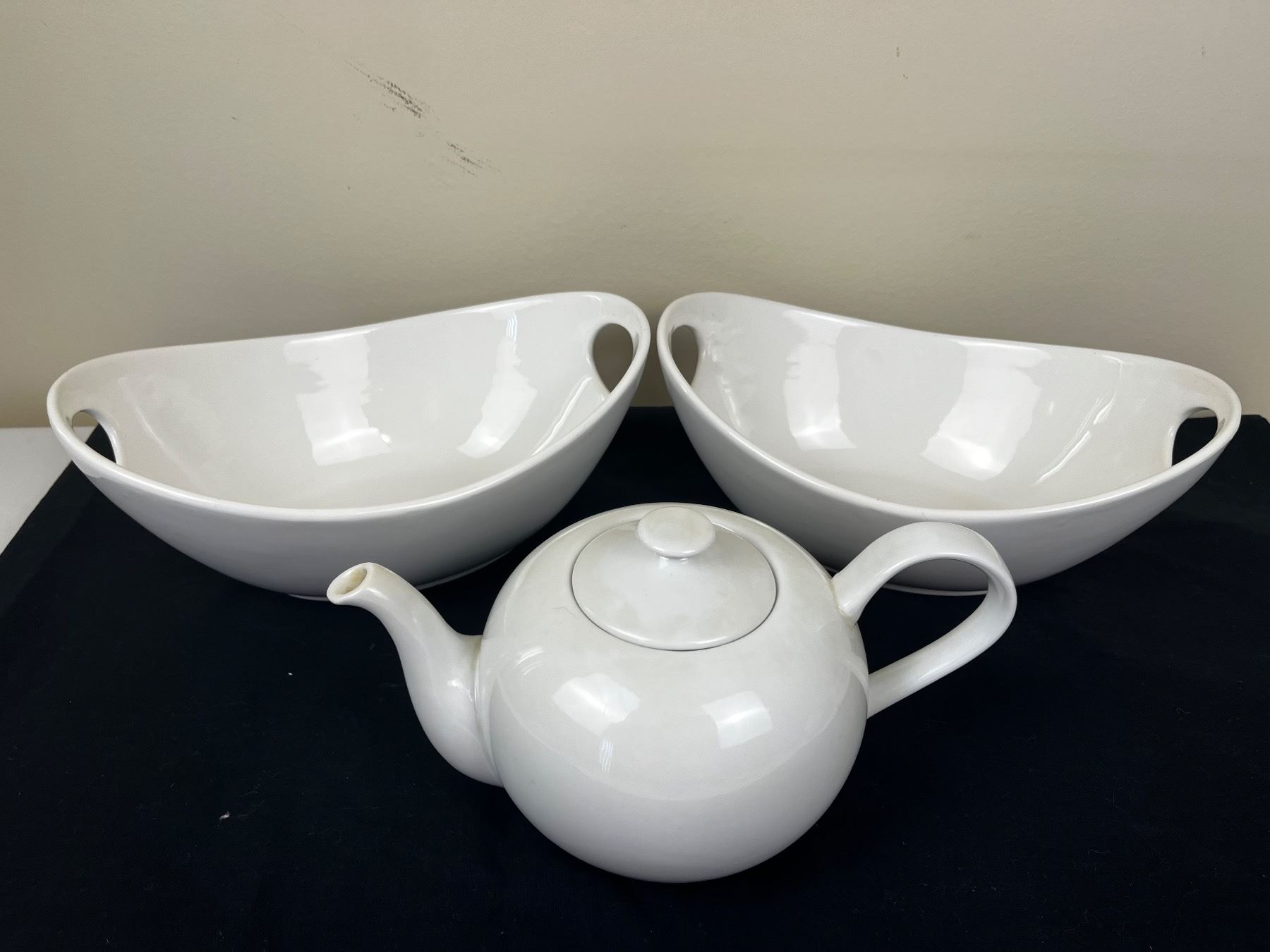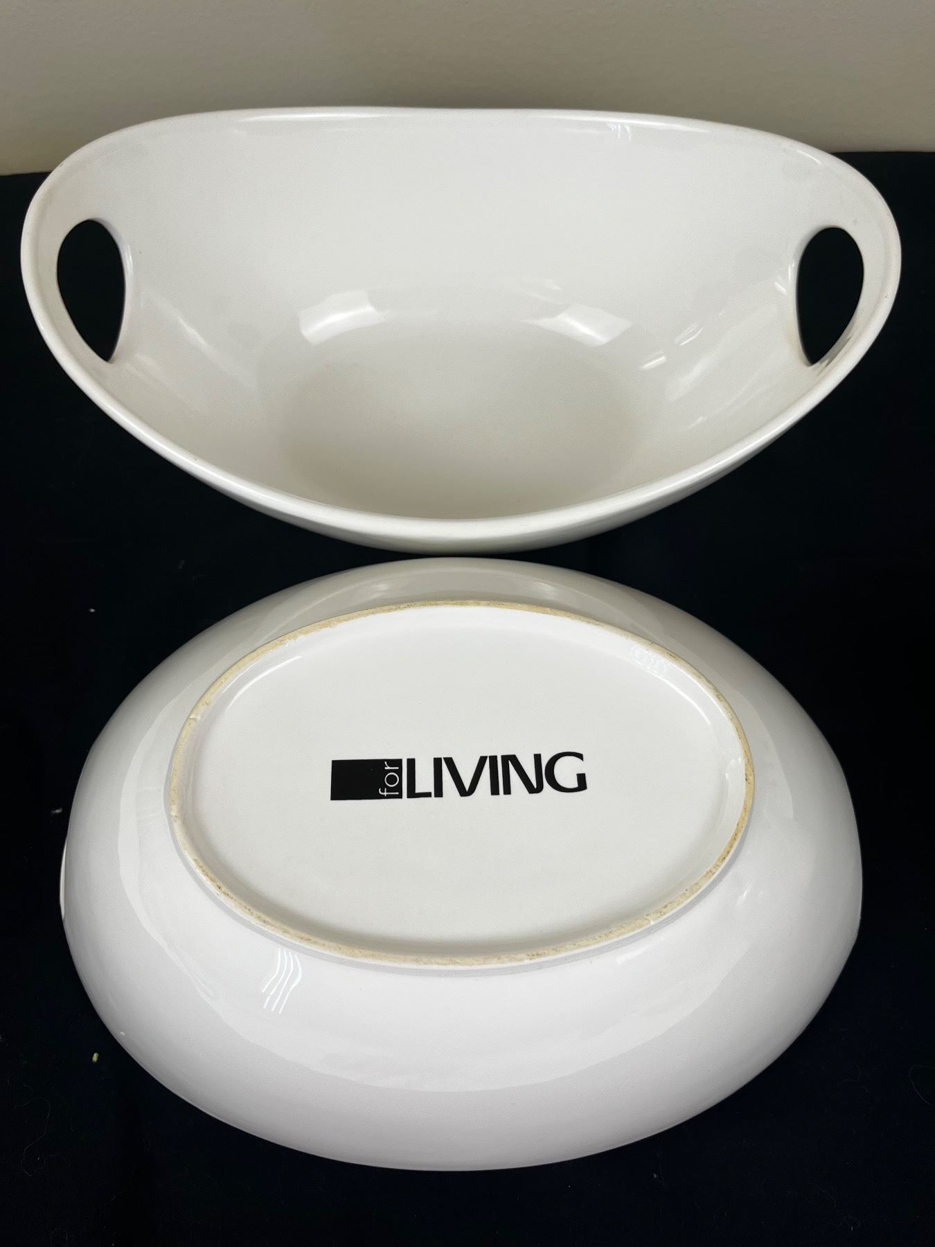 3pcs inc. "For Living" serving bowls, and "Mayfair & Jackson" tea pot, used condition