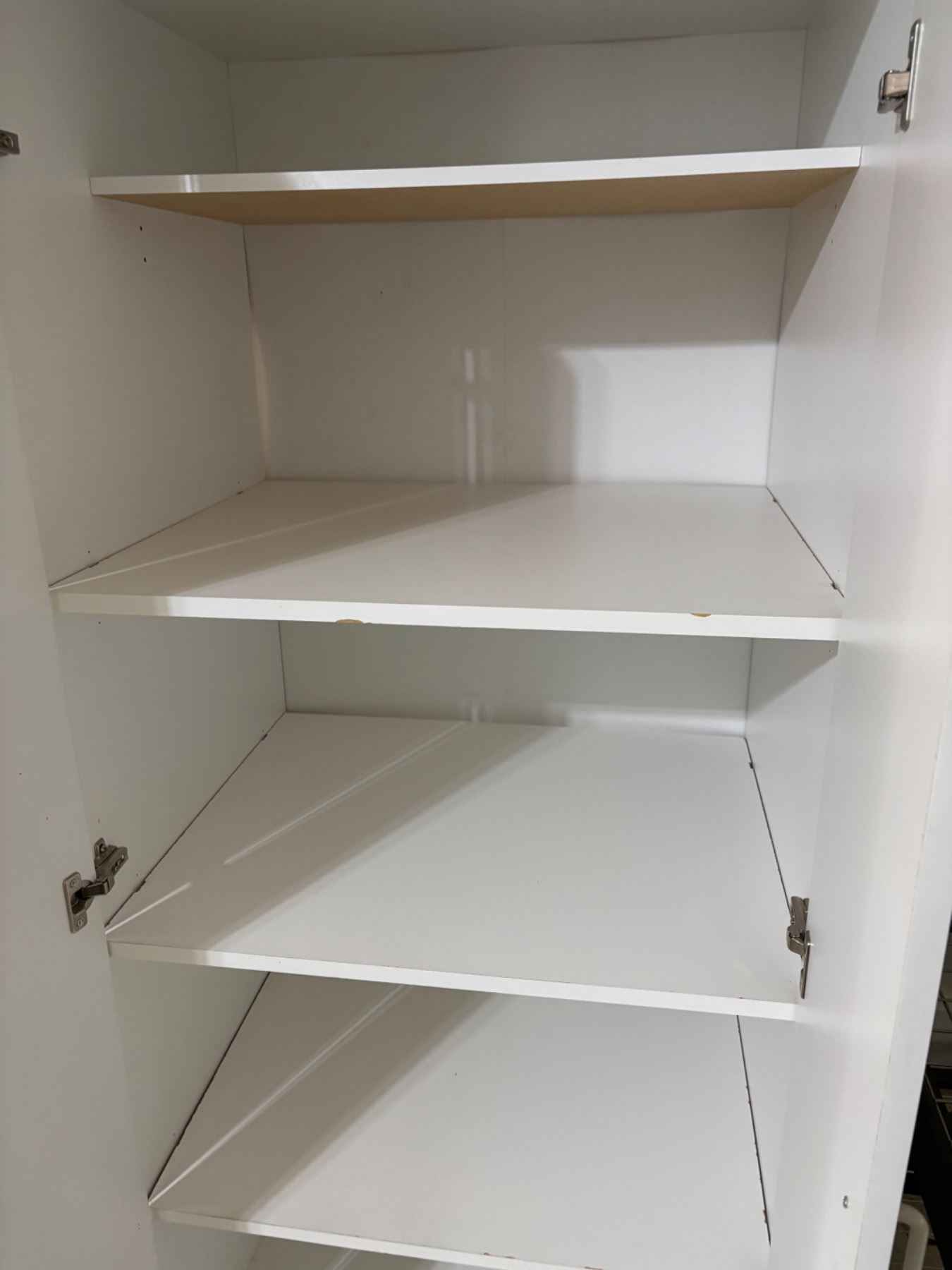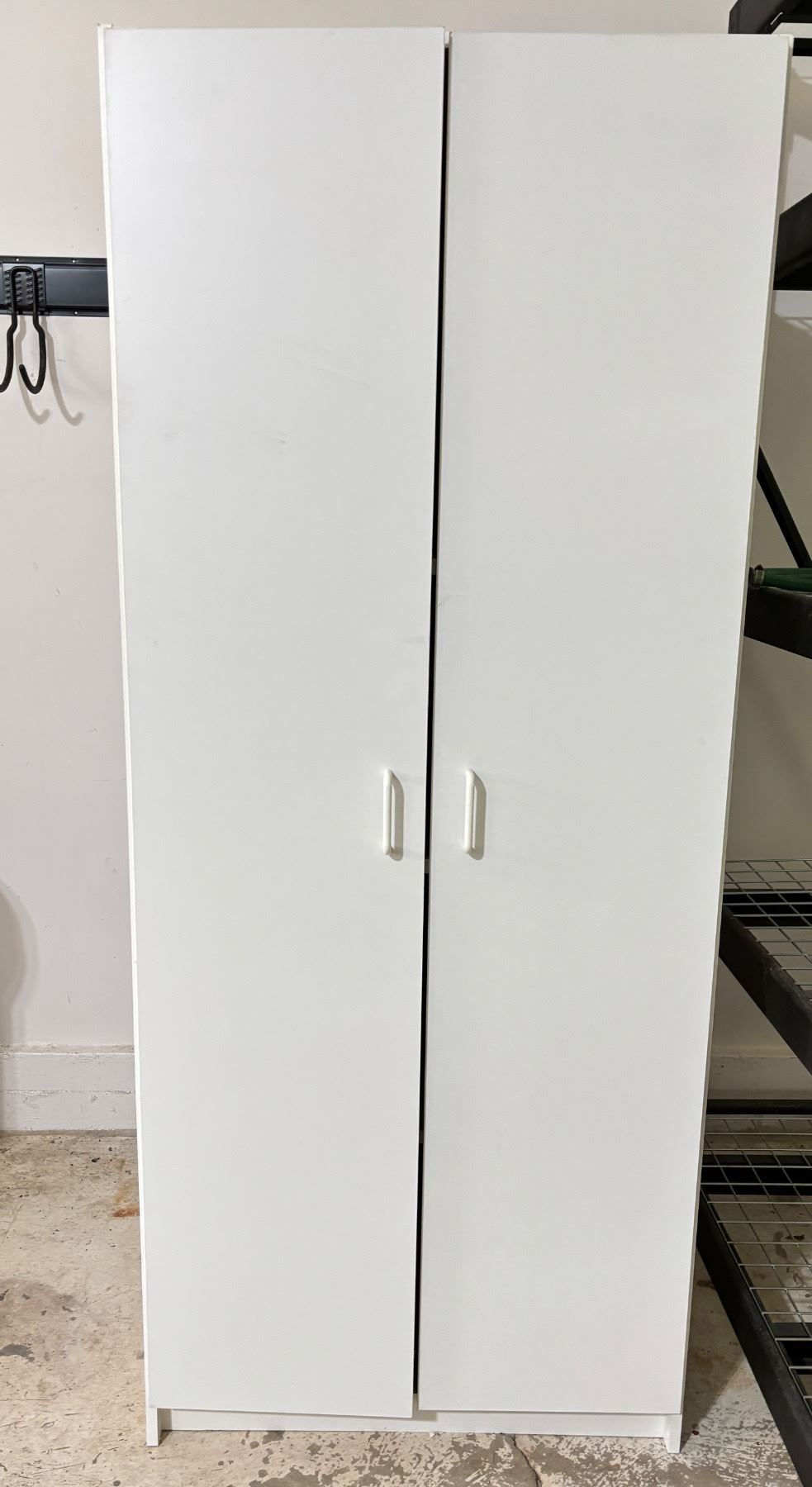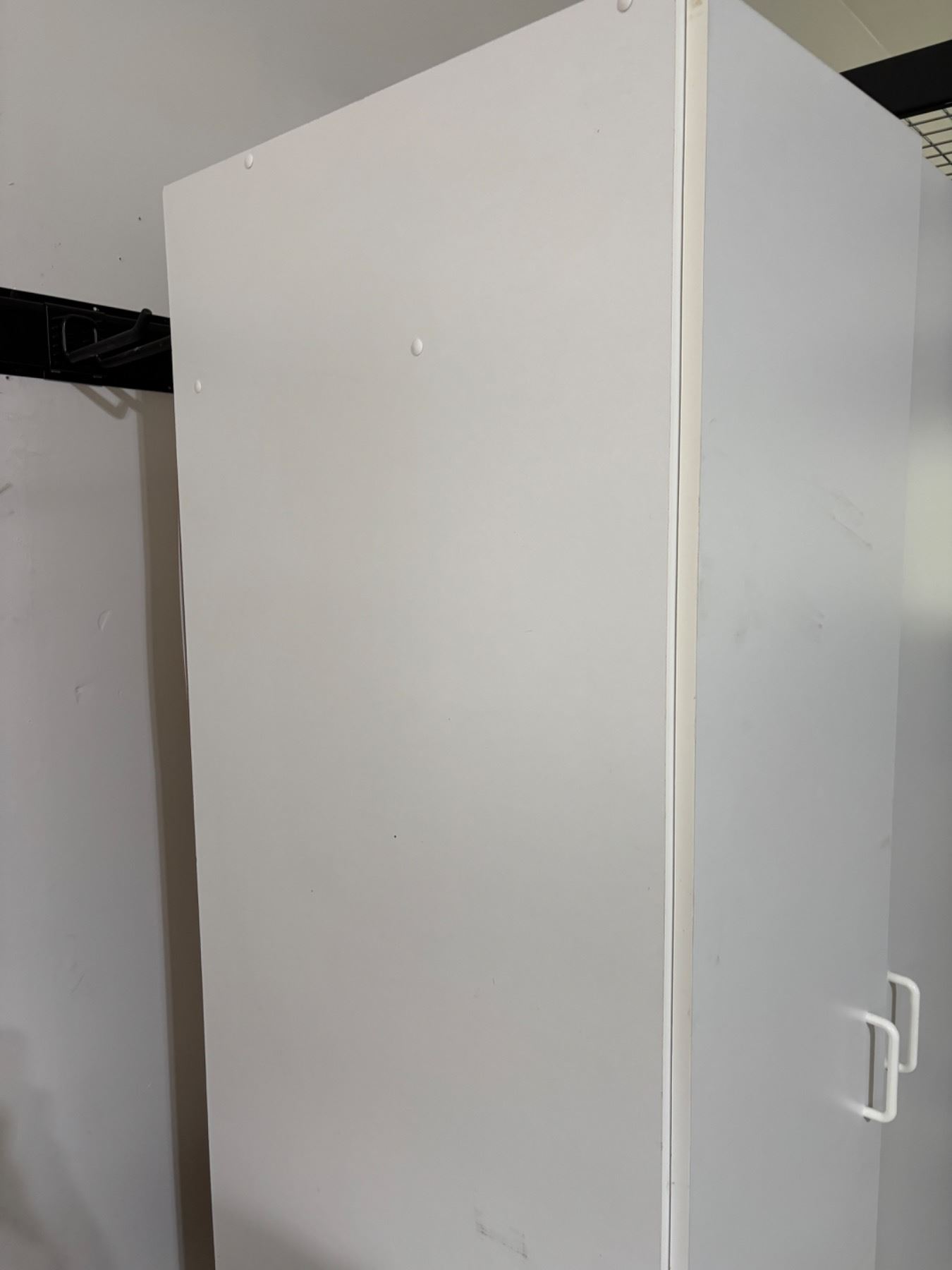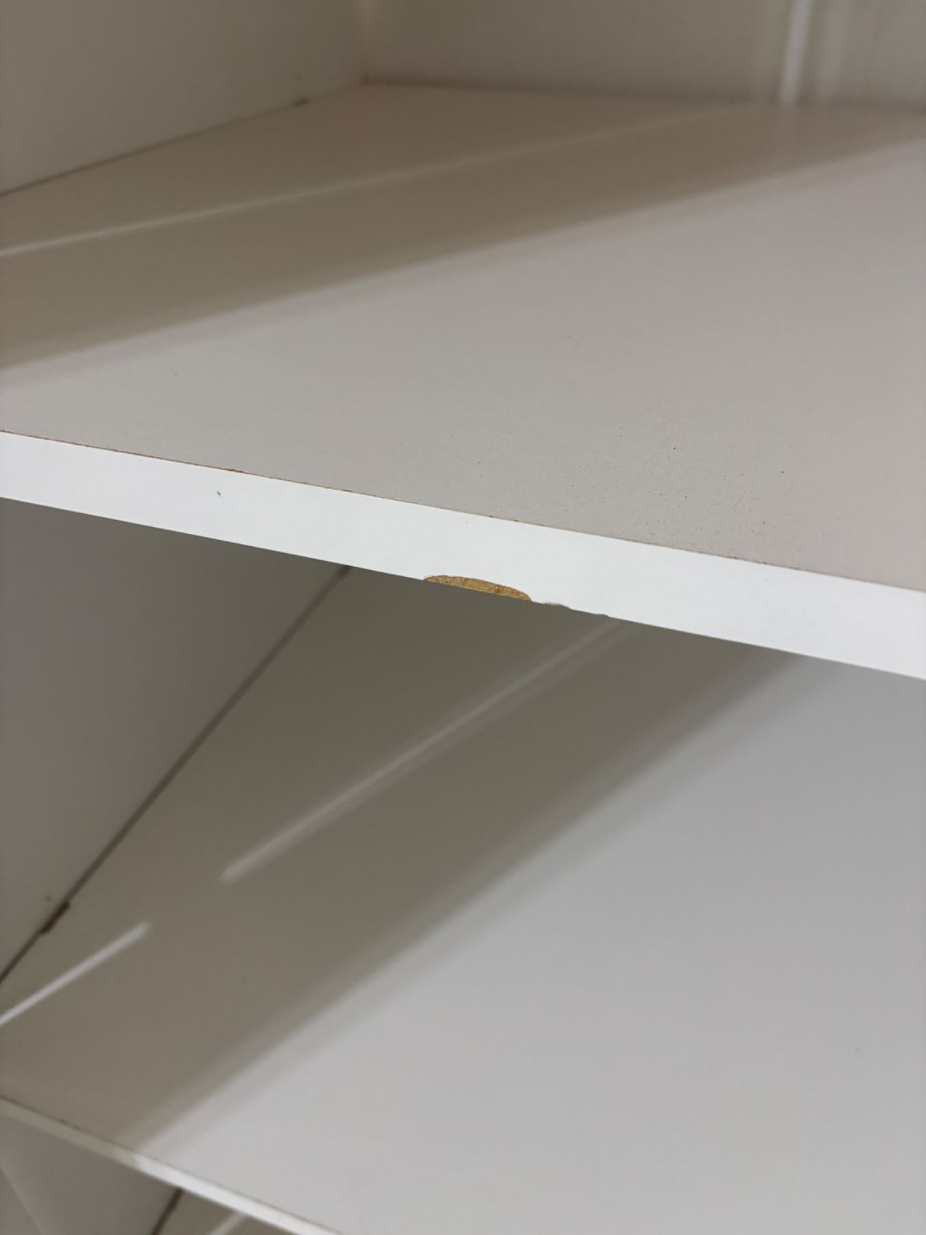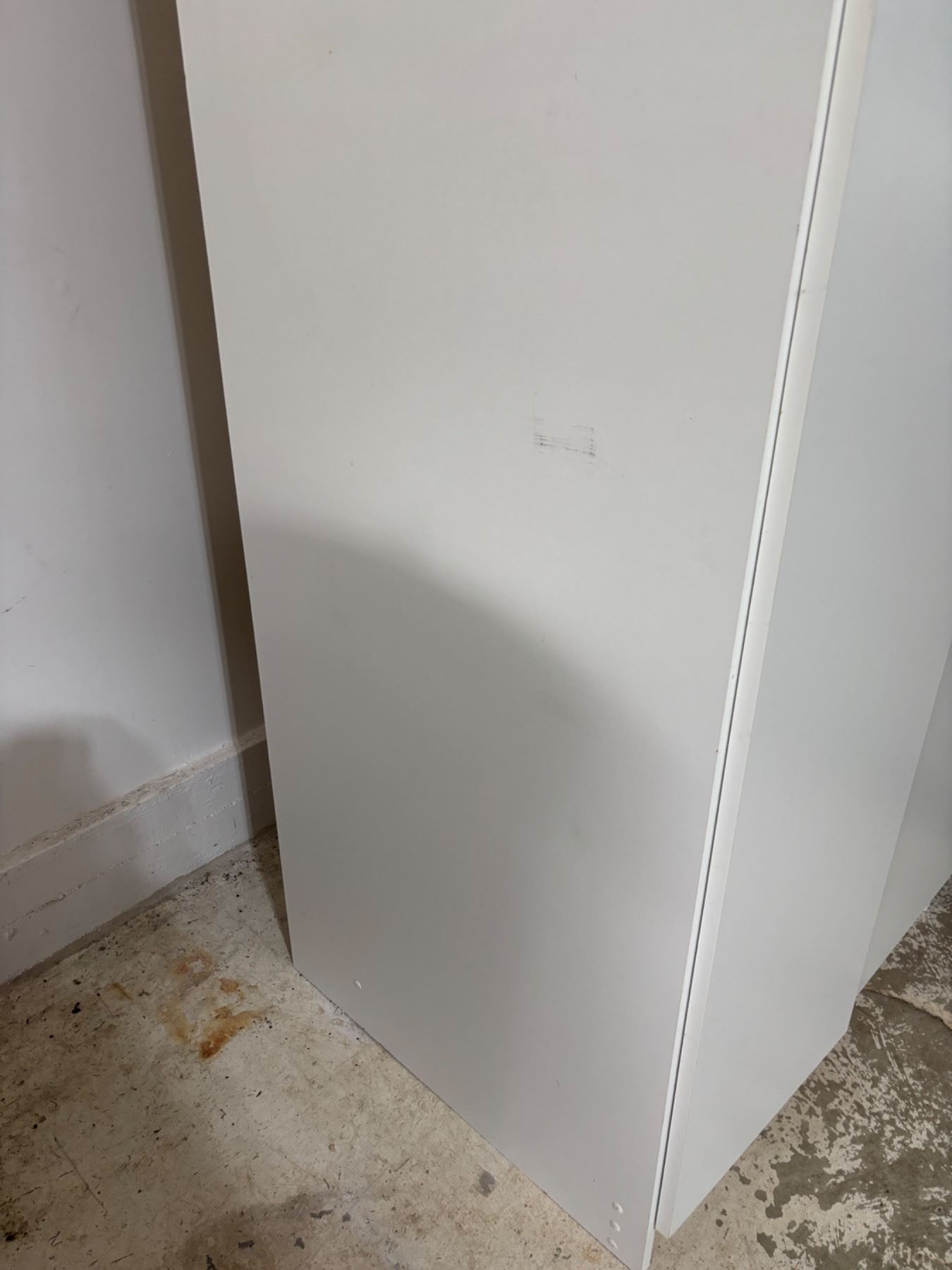 Some small chips, back panel is lifting in one spot, 30"L x 25"W x 72"H