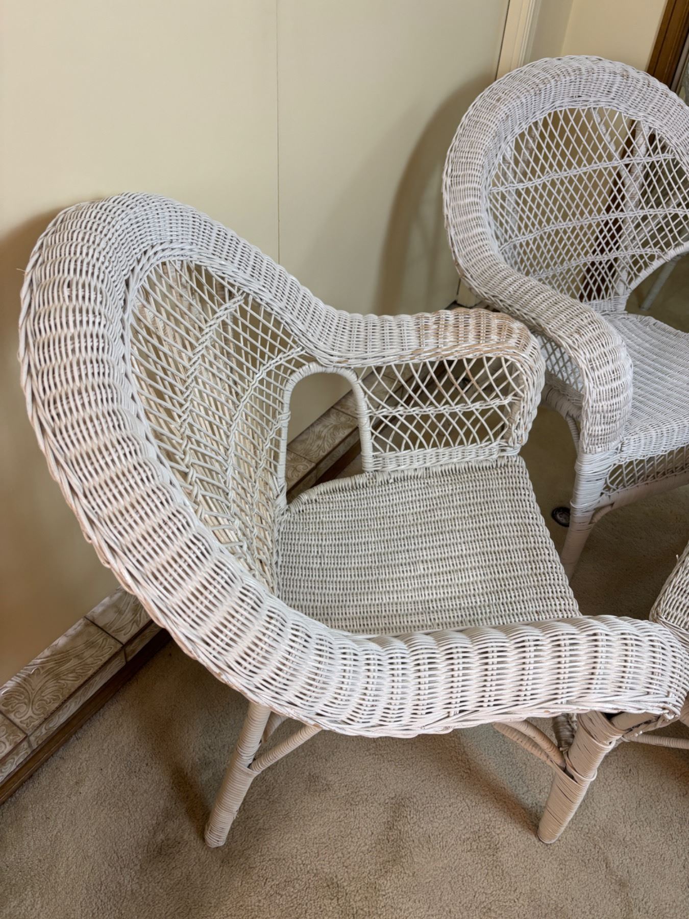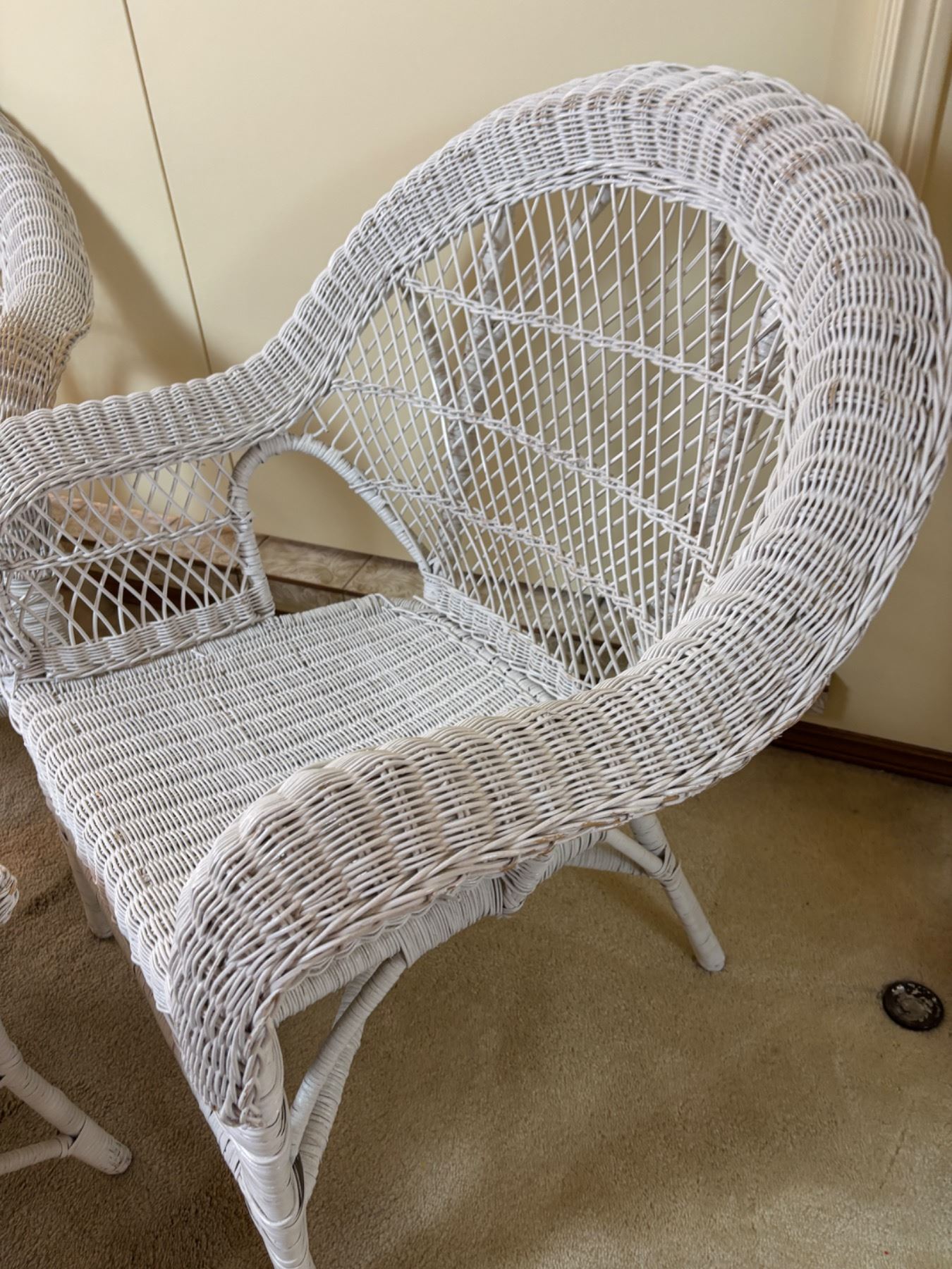 The chairs are 36"H x 30"W x 30"L, The side table is 24"L x 19"W x 18"H