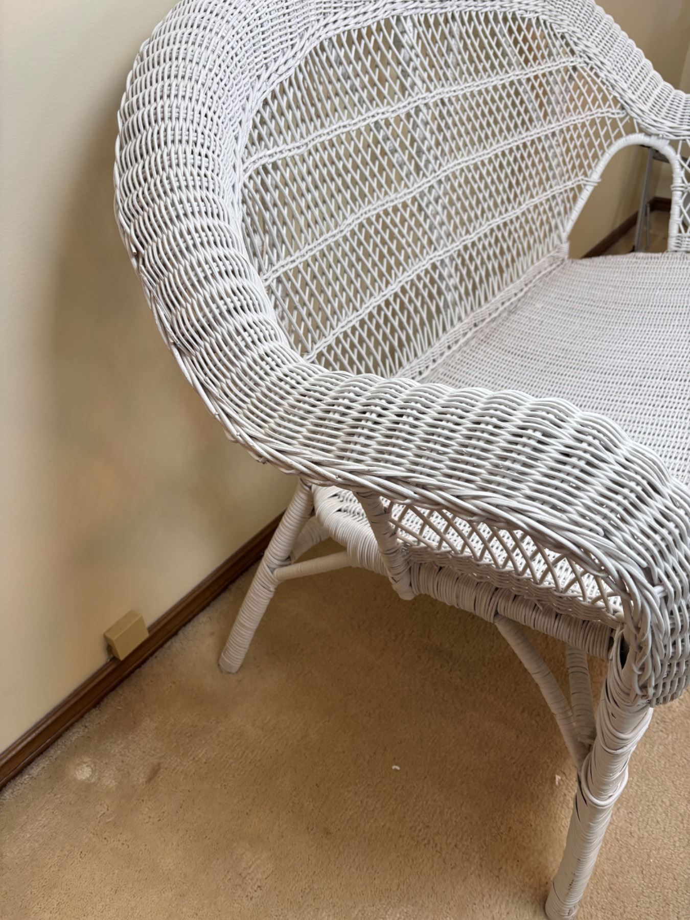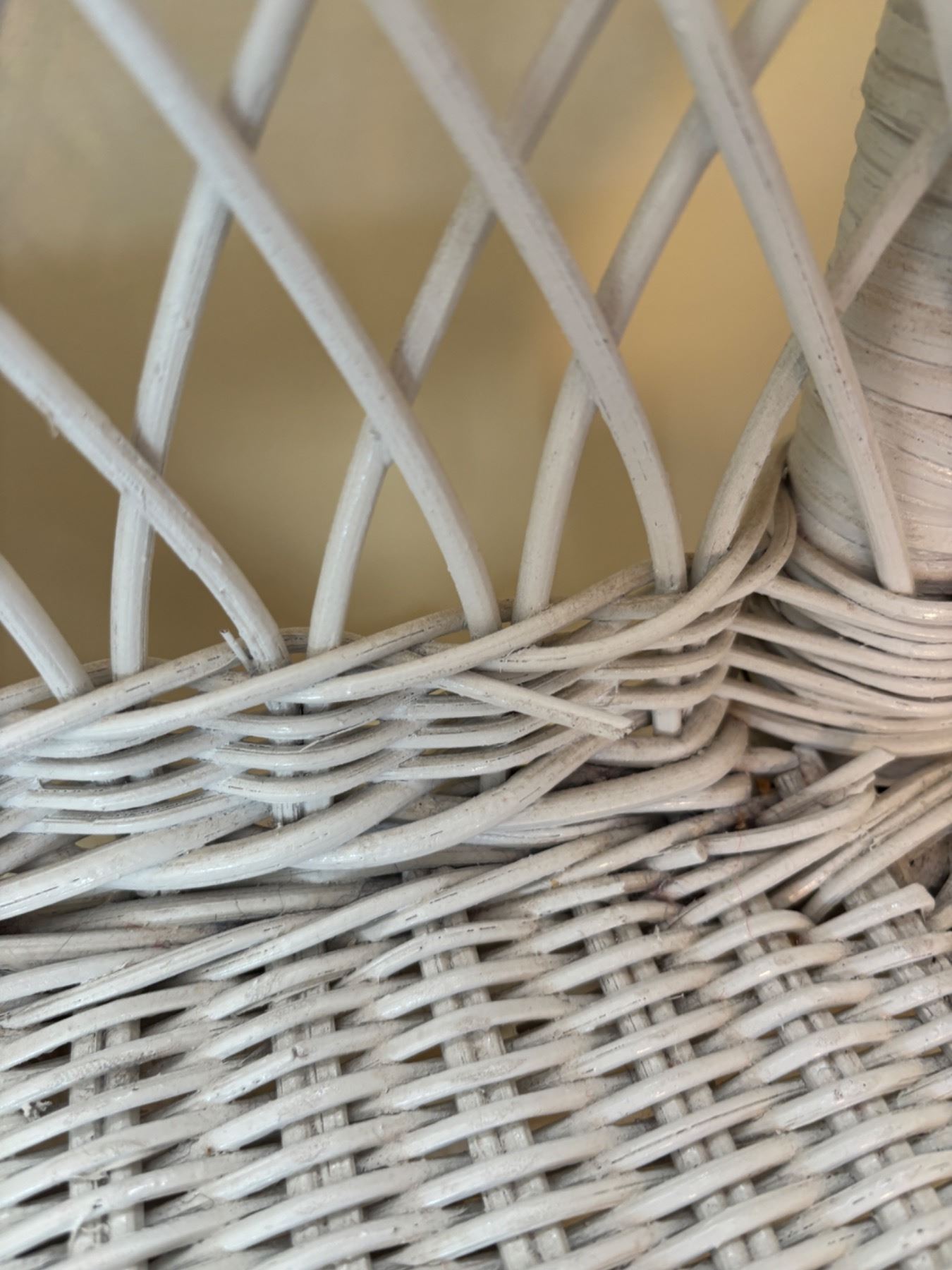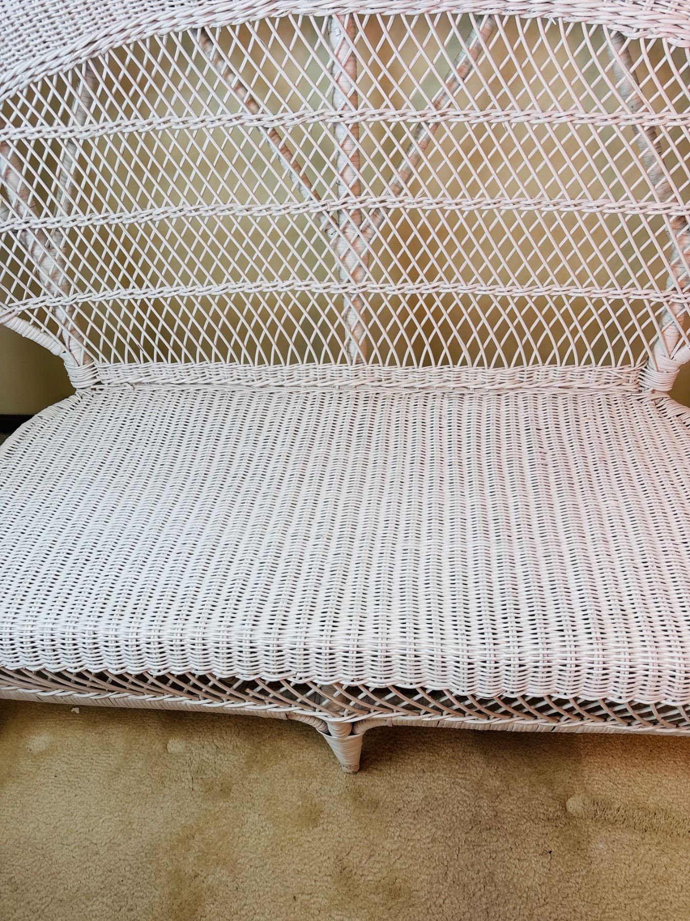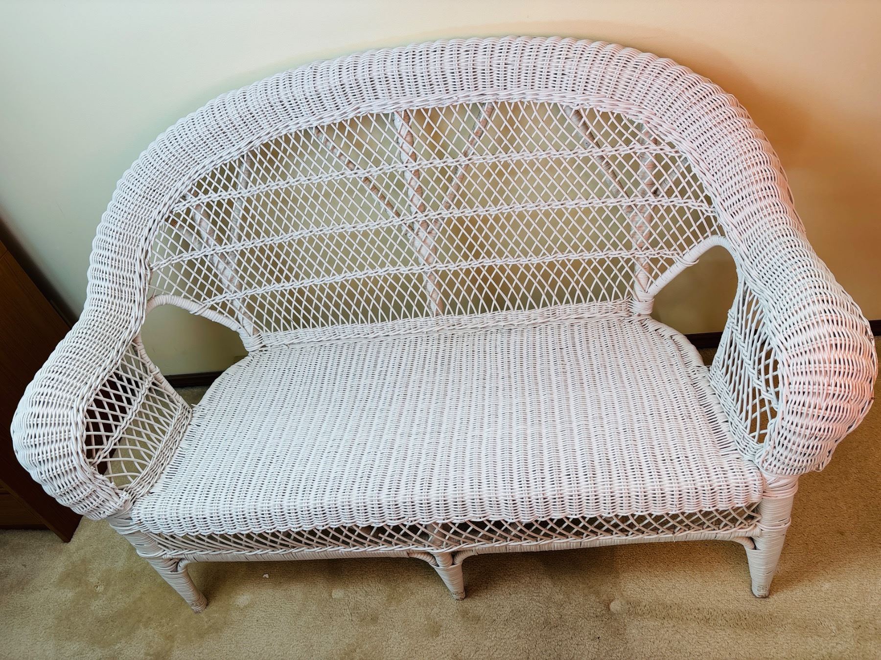 55"L x 37"H x 27"H, some frayed edges on the wicker