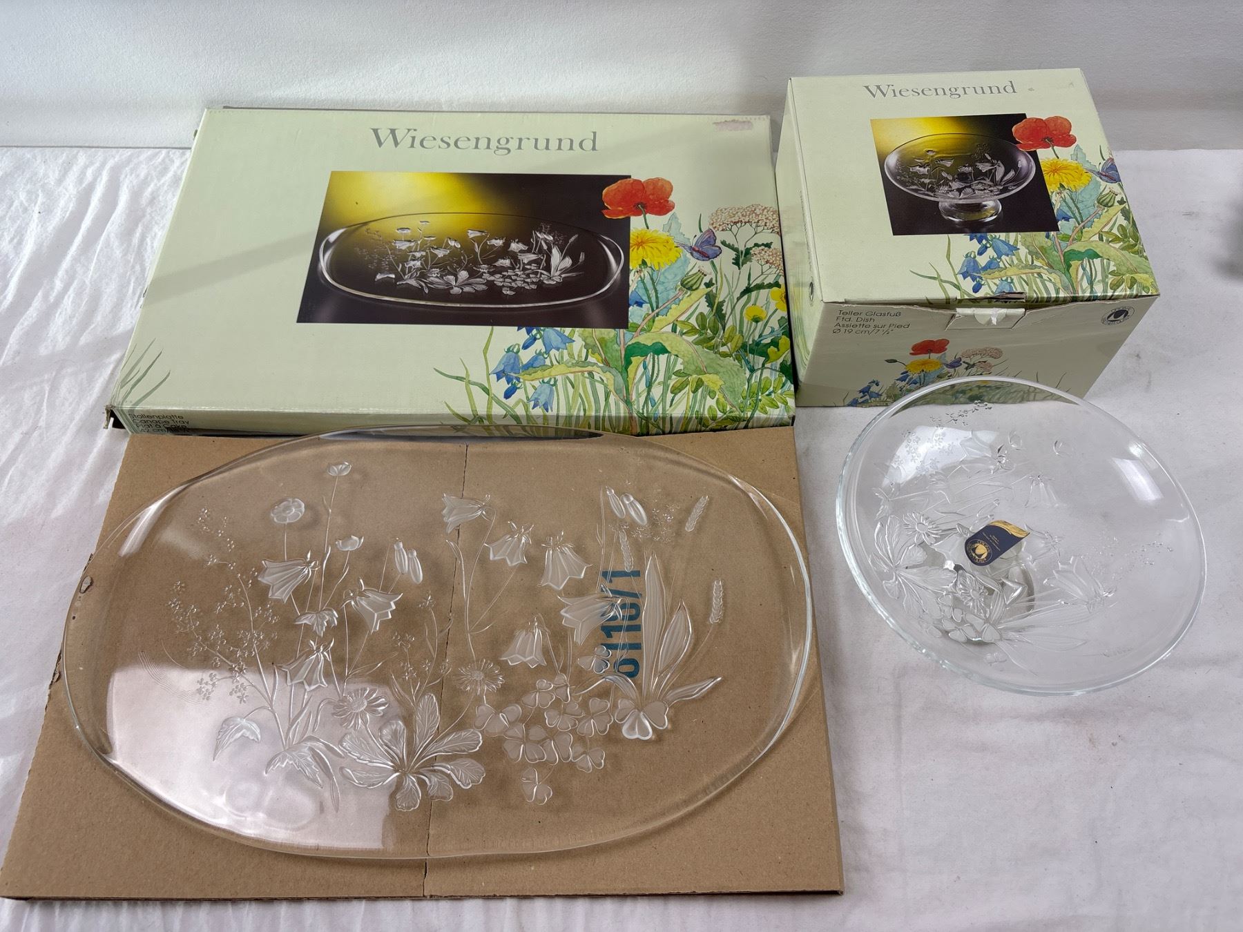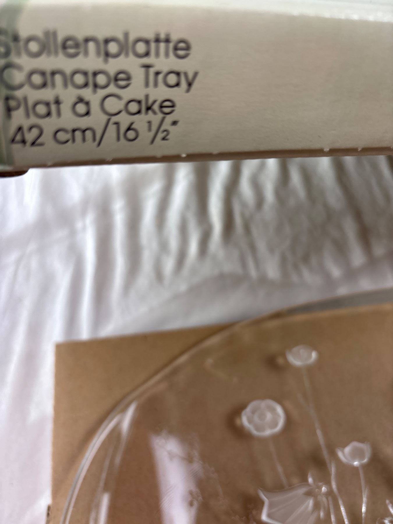 Includes a 19cm footed dish and a 42cm canapé tray