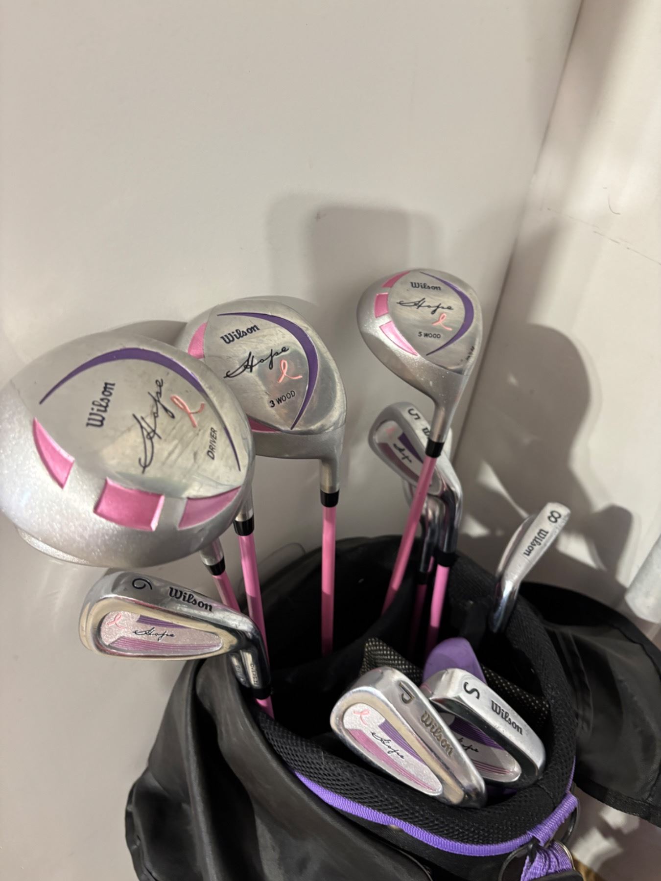 Includes a variety of right handed golf clubs