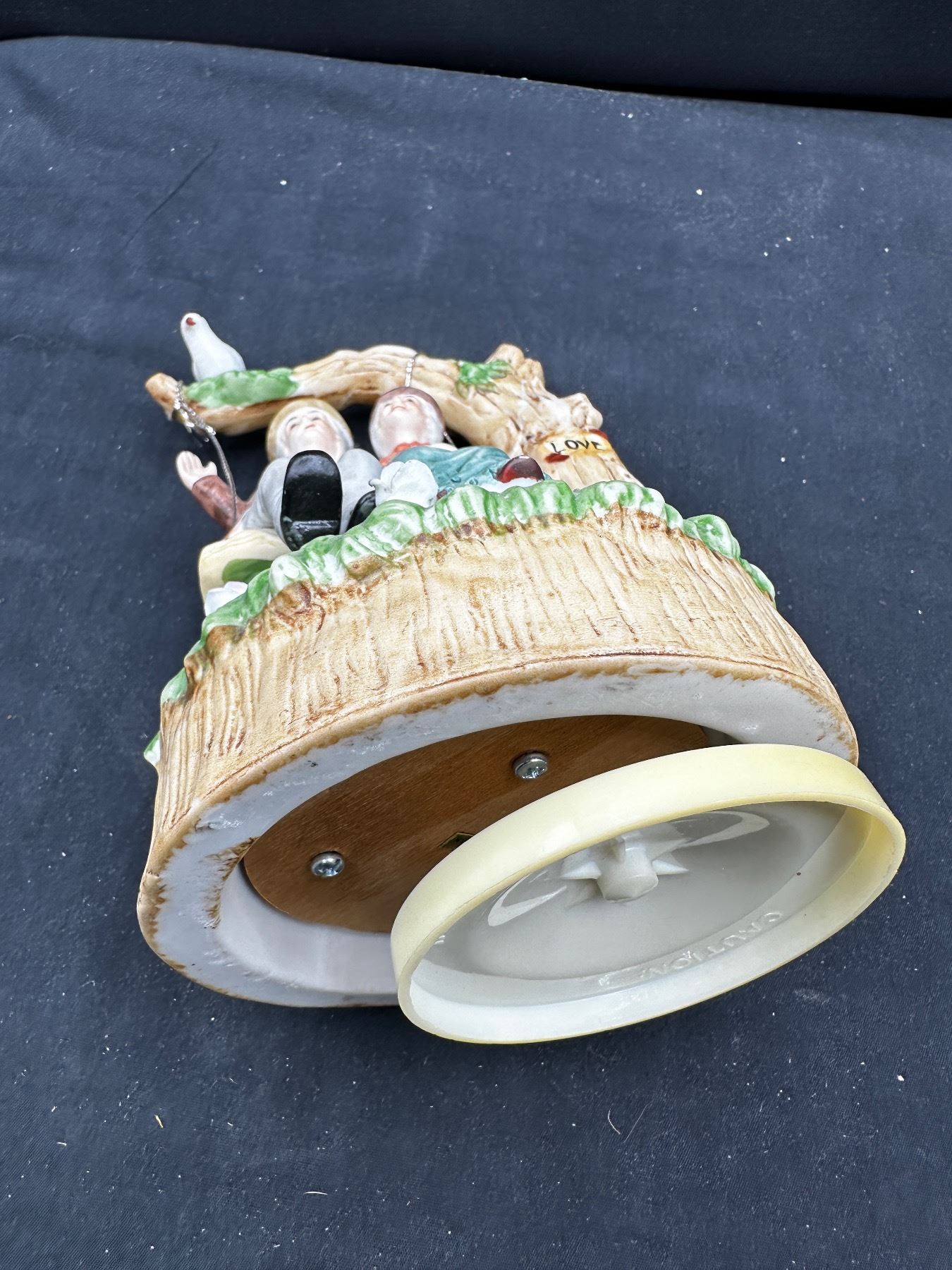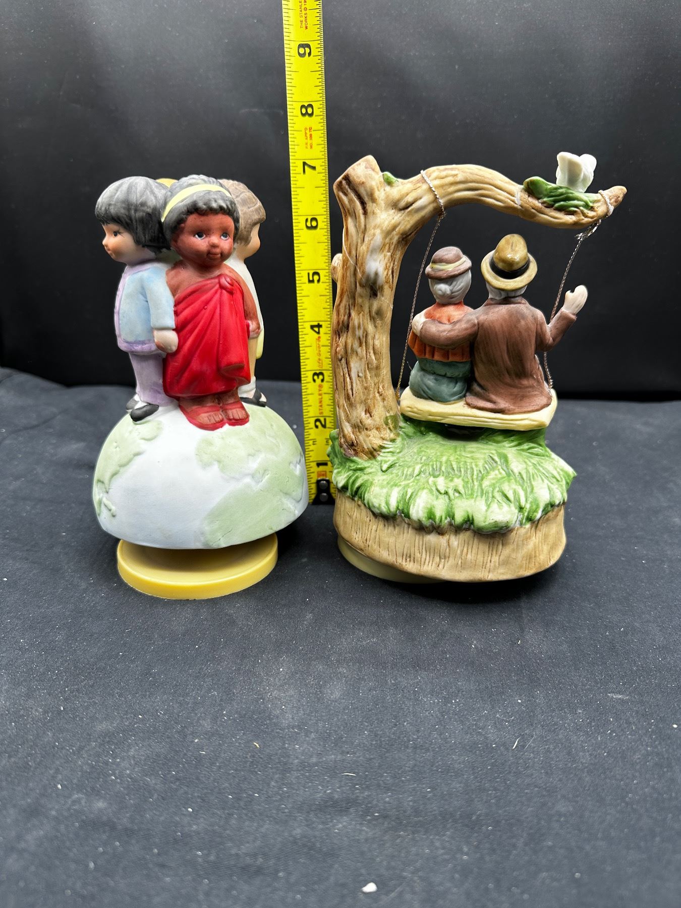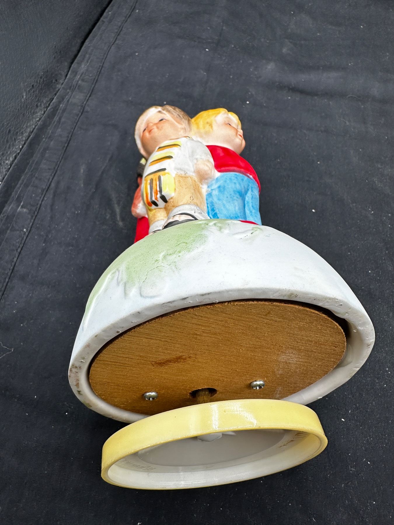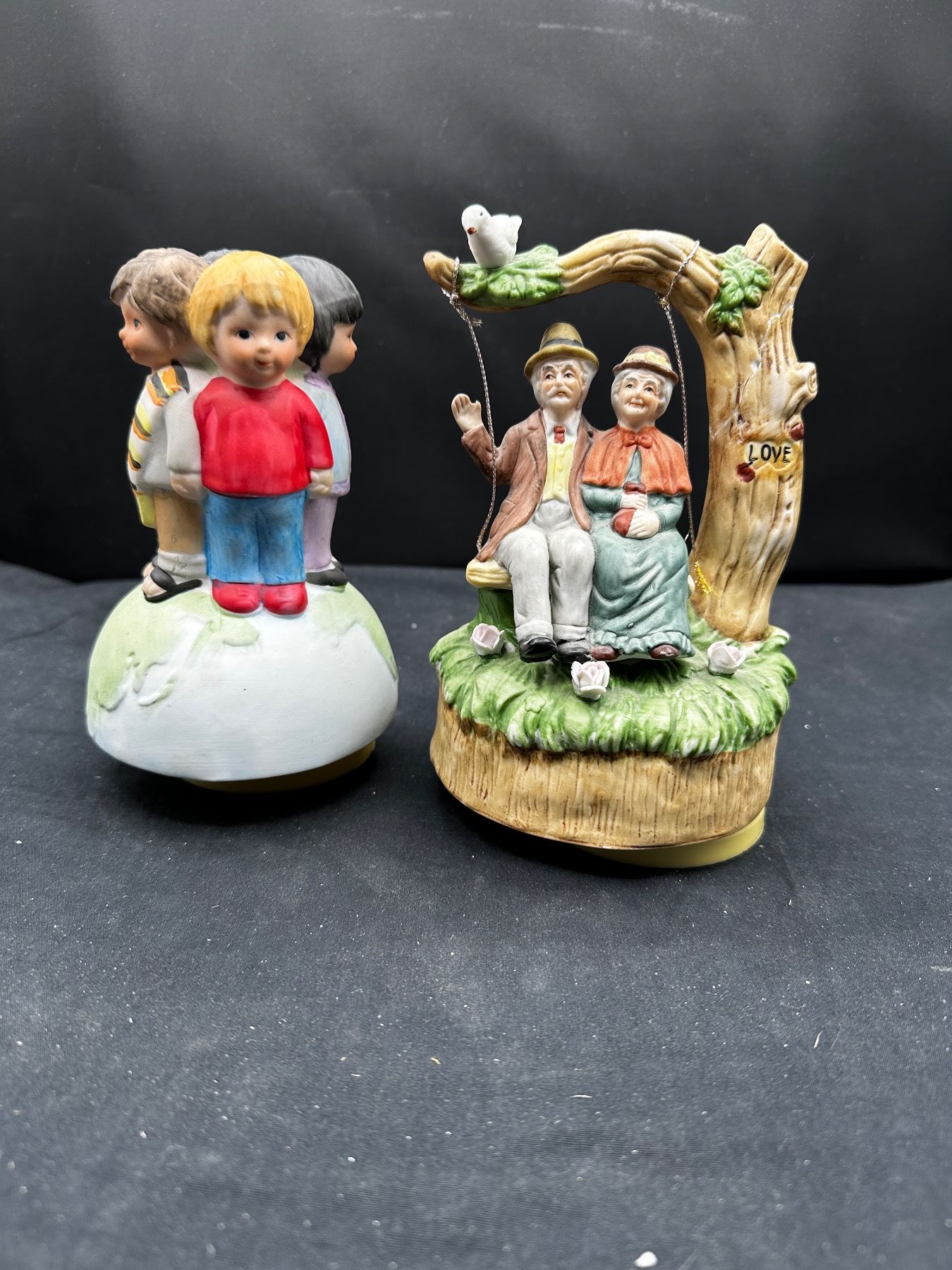Vintage "old couple" music box rotates and plays music - "Children of the World" winds but does not spin or play music