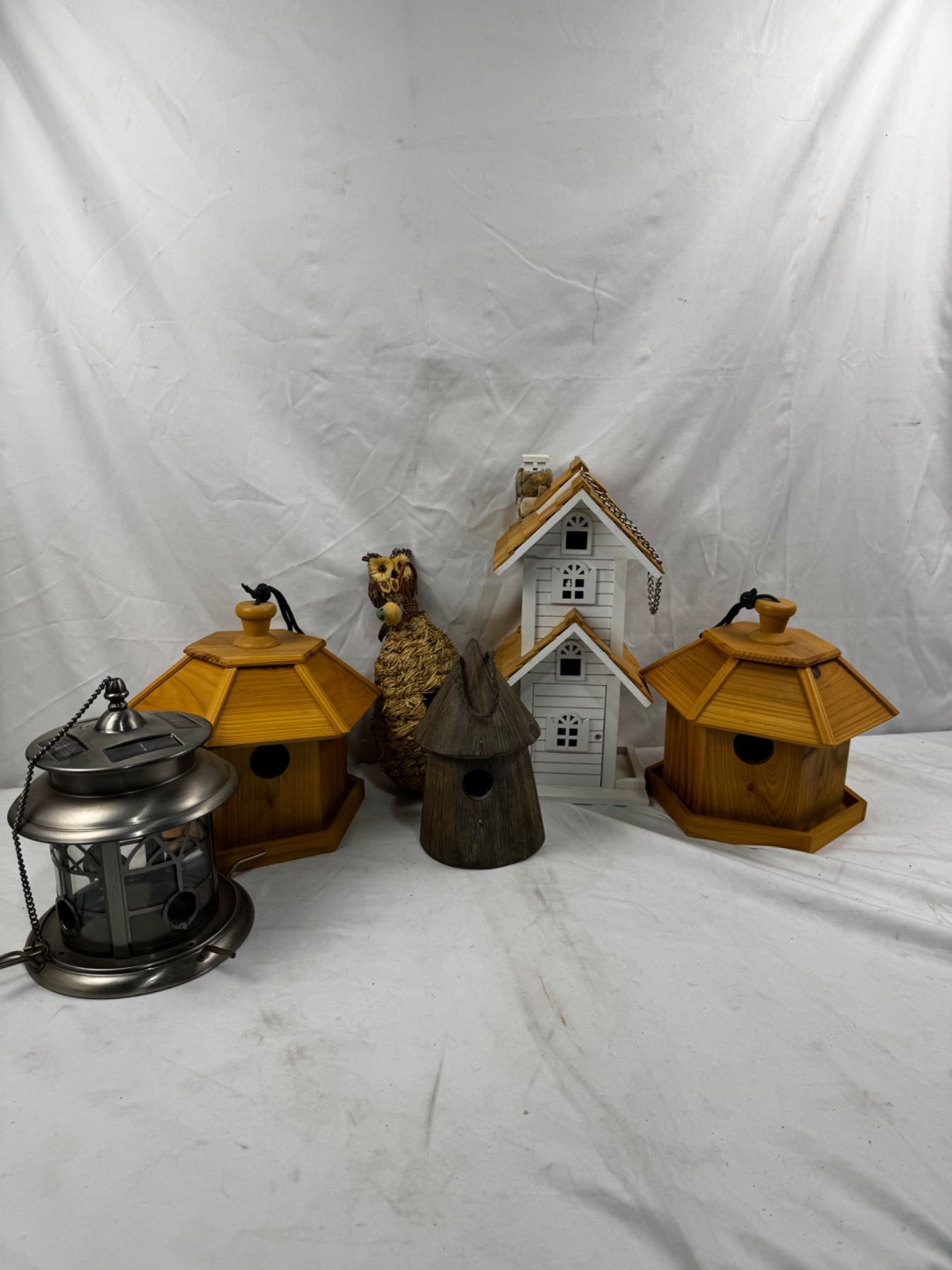 Largest piece is Bn Birds house which is 15" tall. Solar panels on solar light appear to have some wear.