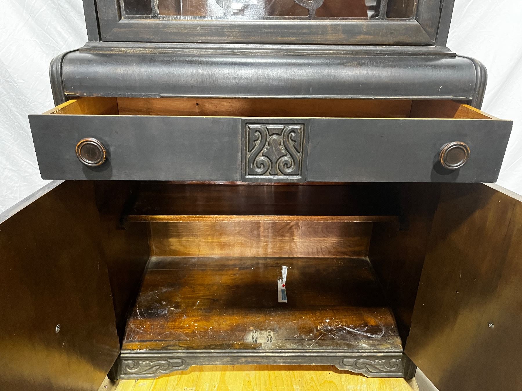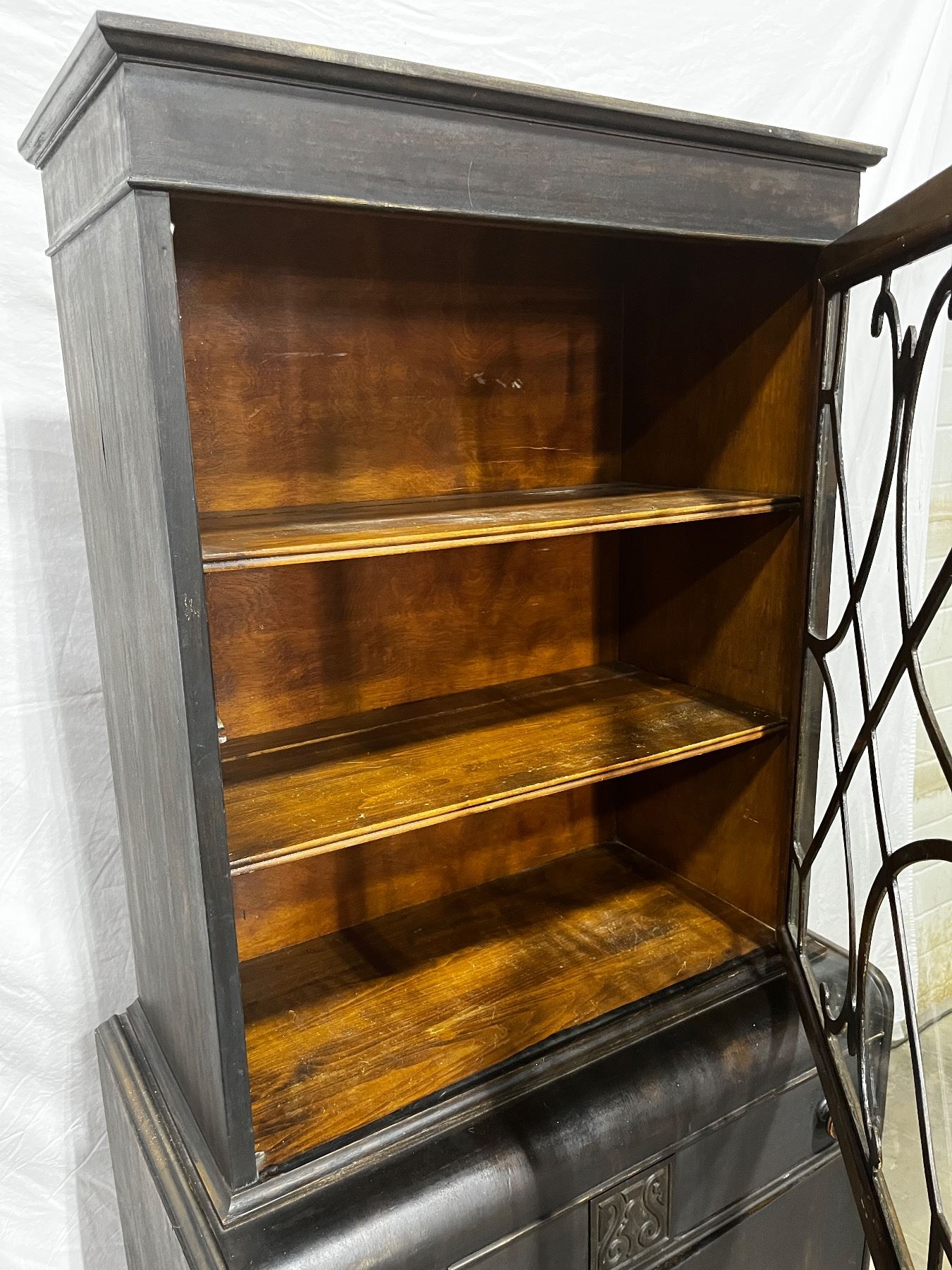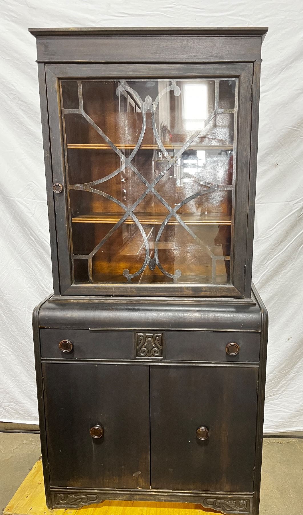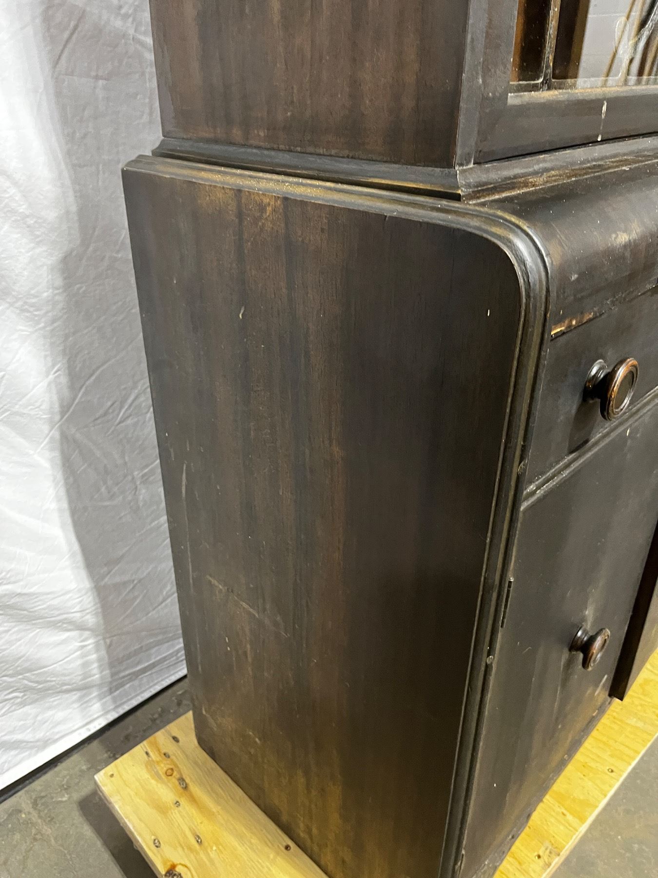In worn condition, has scuffs and chips, 62.5"H x 30"L x 16"W