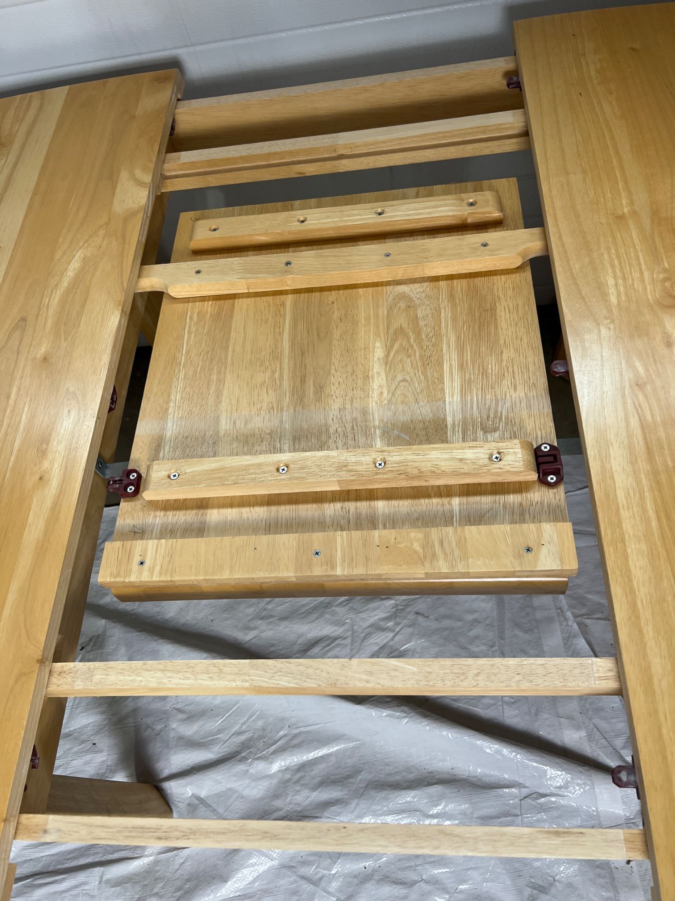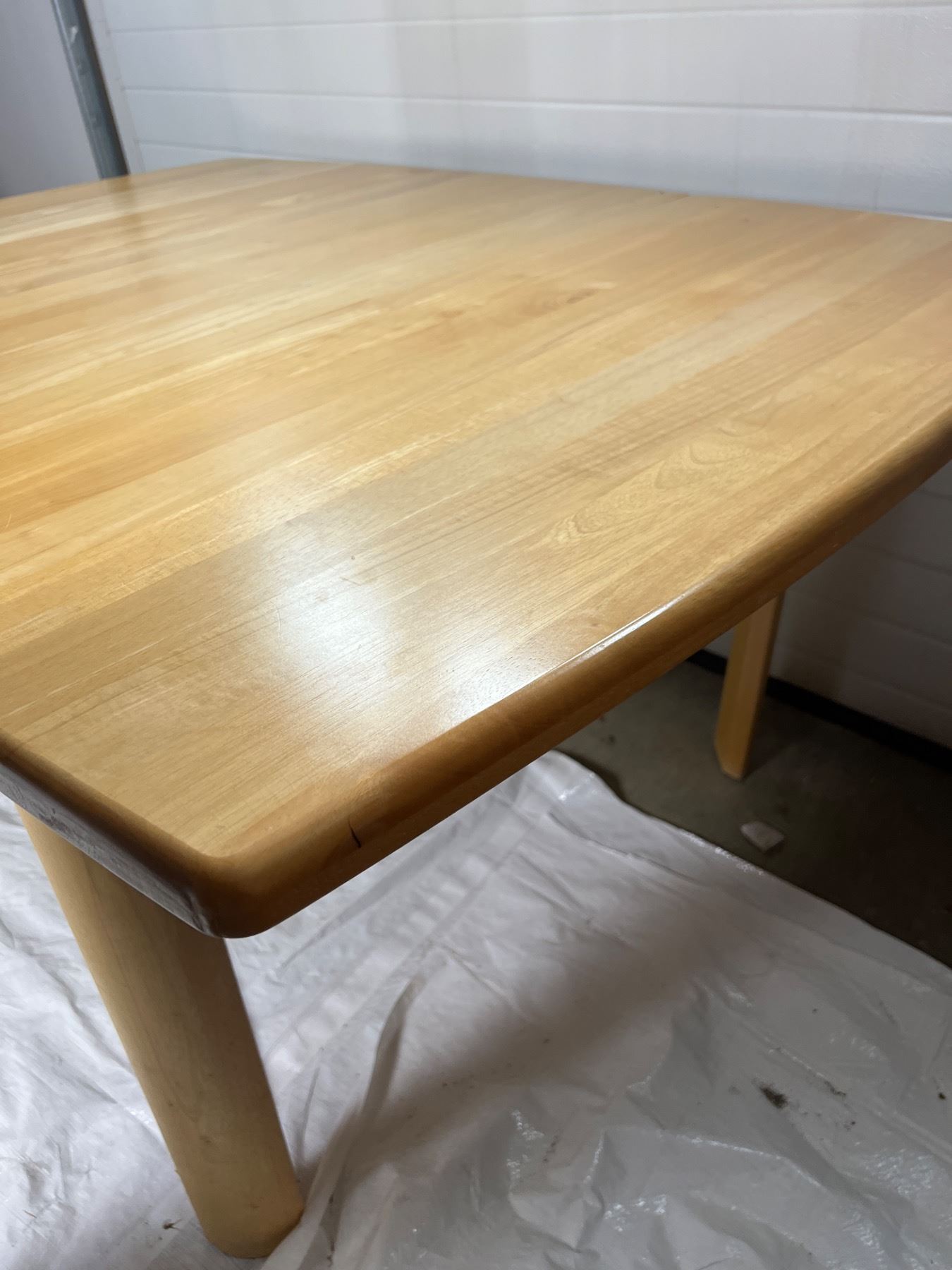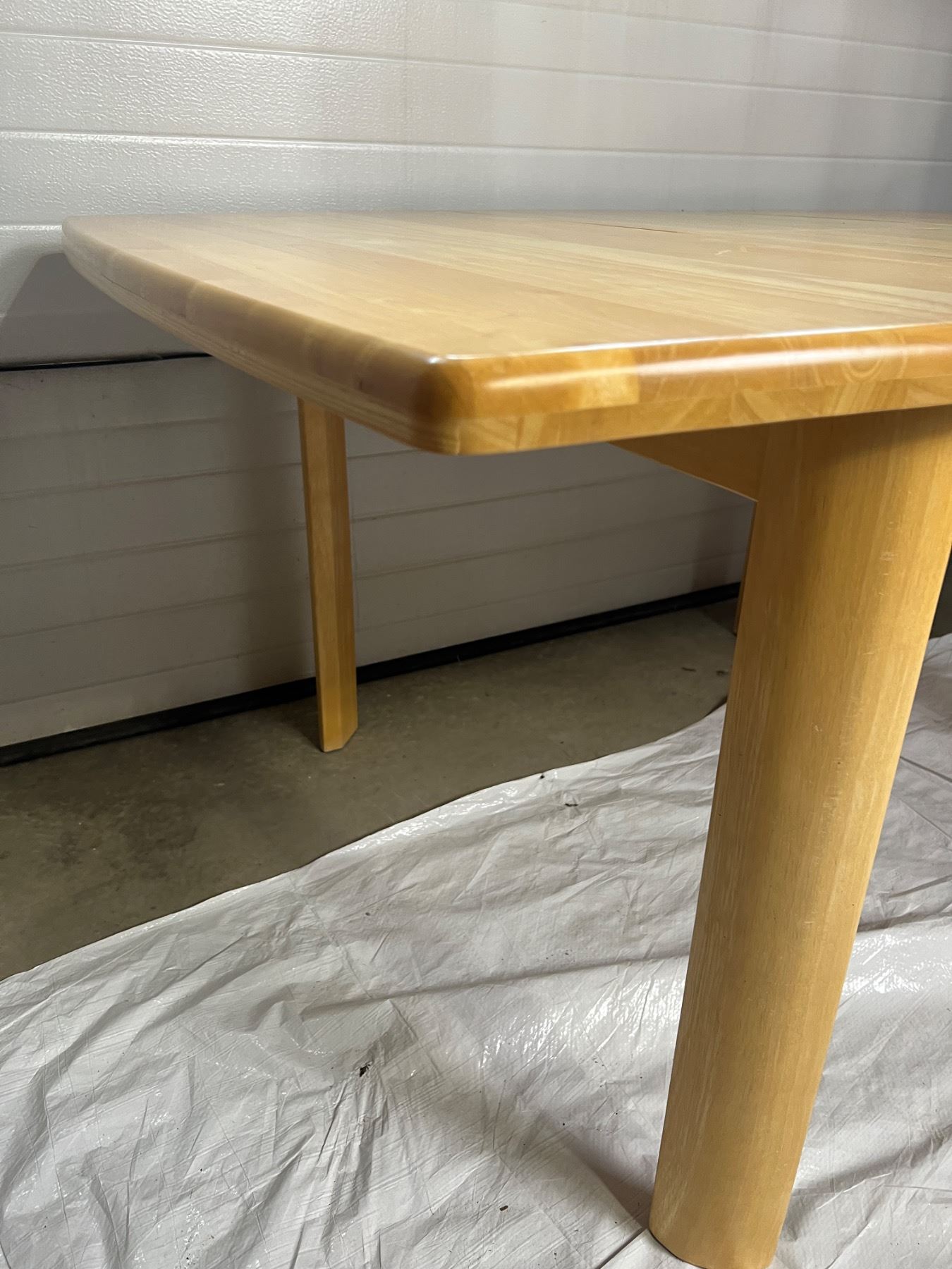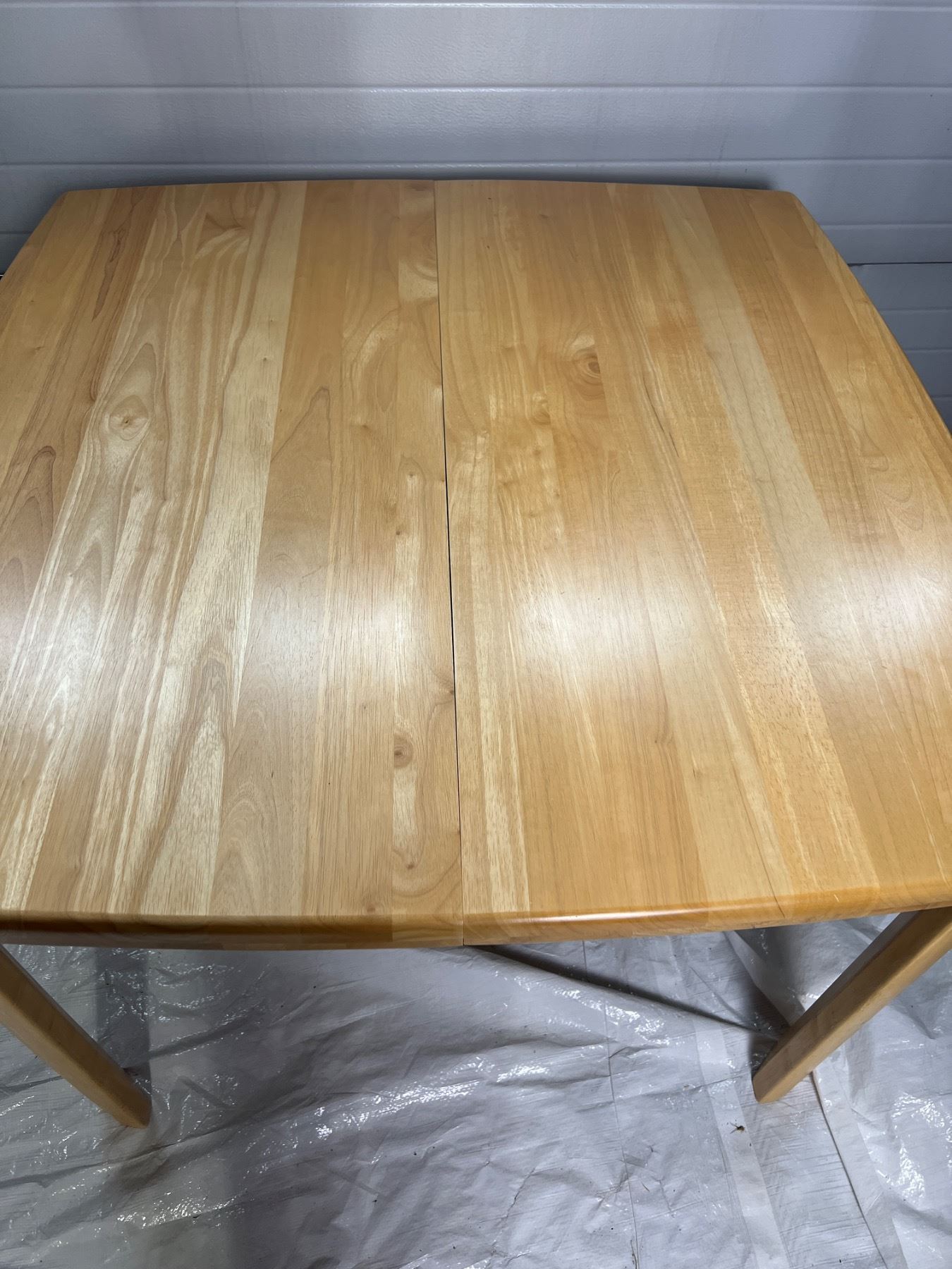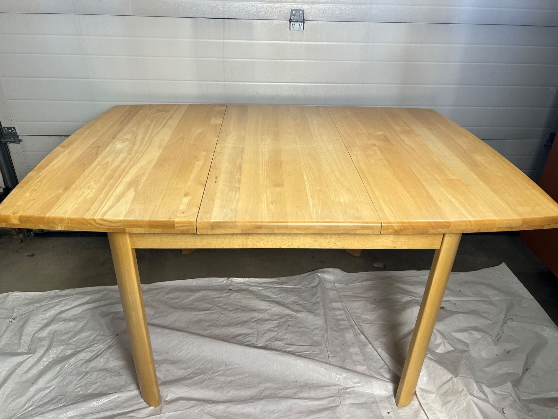 Has some scuffs on the table legs, does not come with any chairs, Table with the leaf inserted is 61"L x 42"W x 30"H, Table without the leaf is 42"L