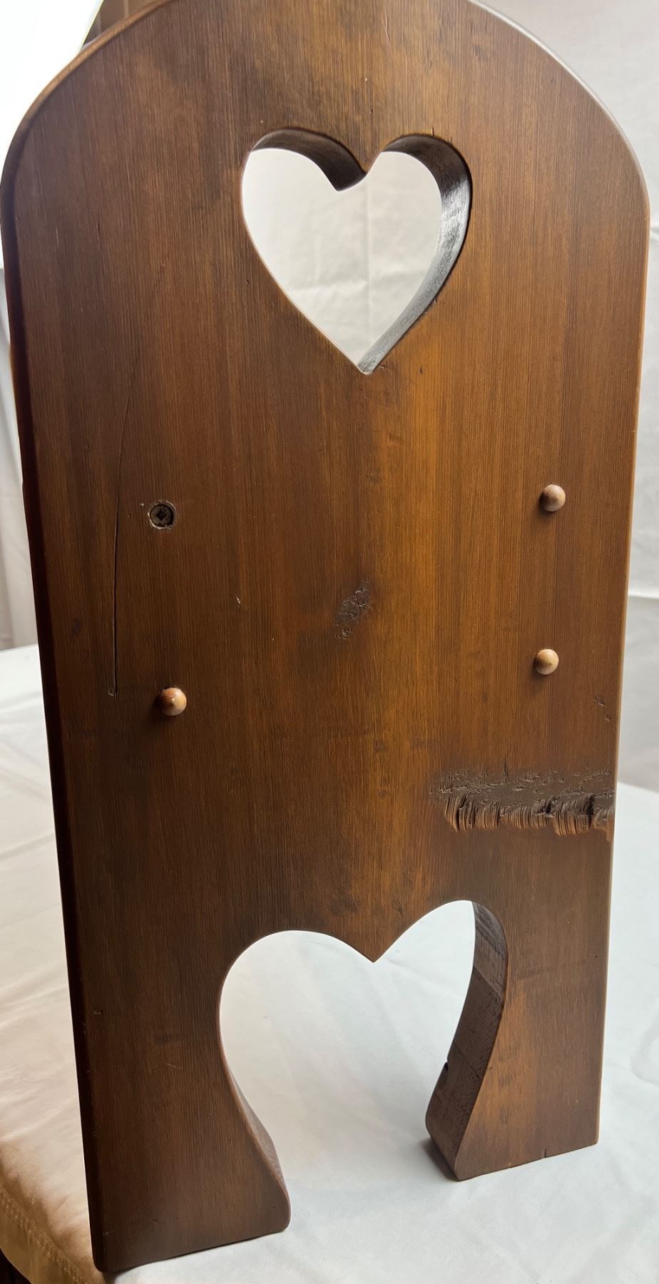 23" T by 42" W and 11" D. Wobbles and is missing pegs out of the side. Scuffs and markings on surface.