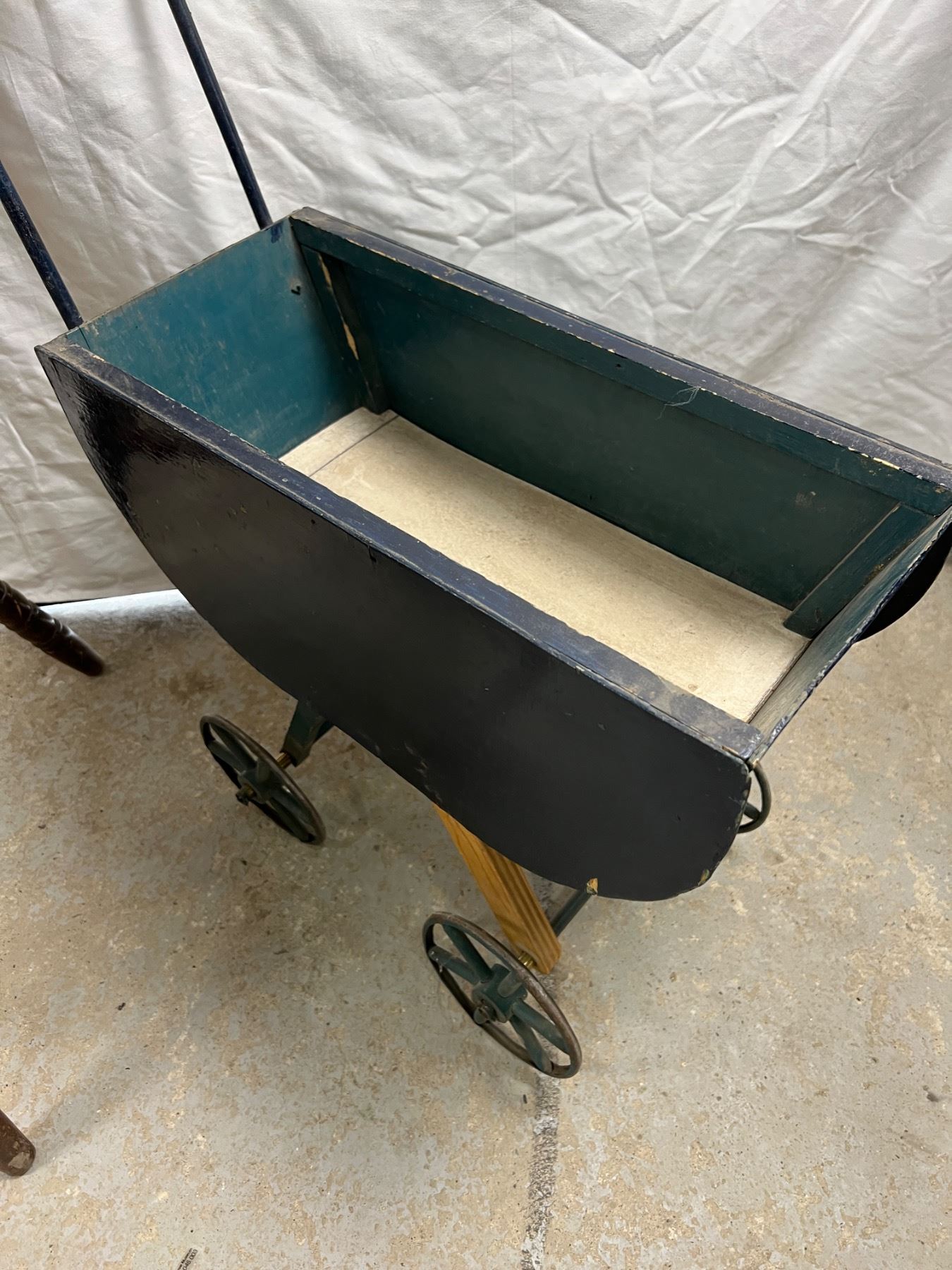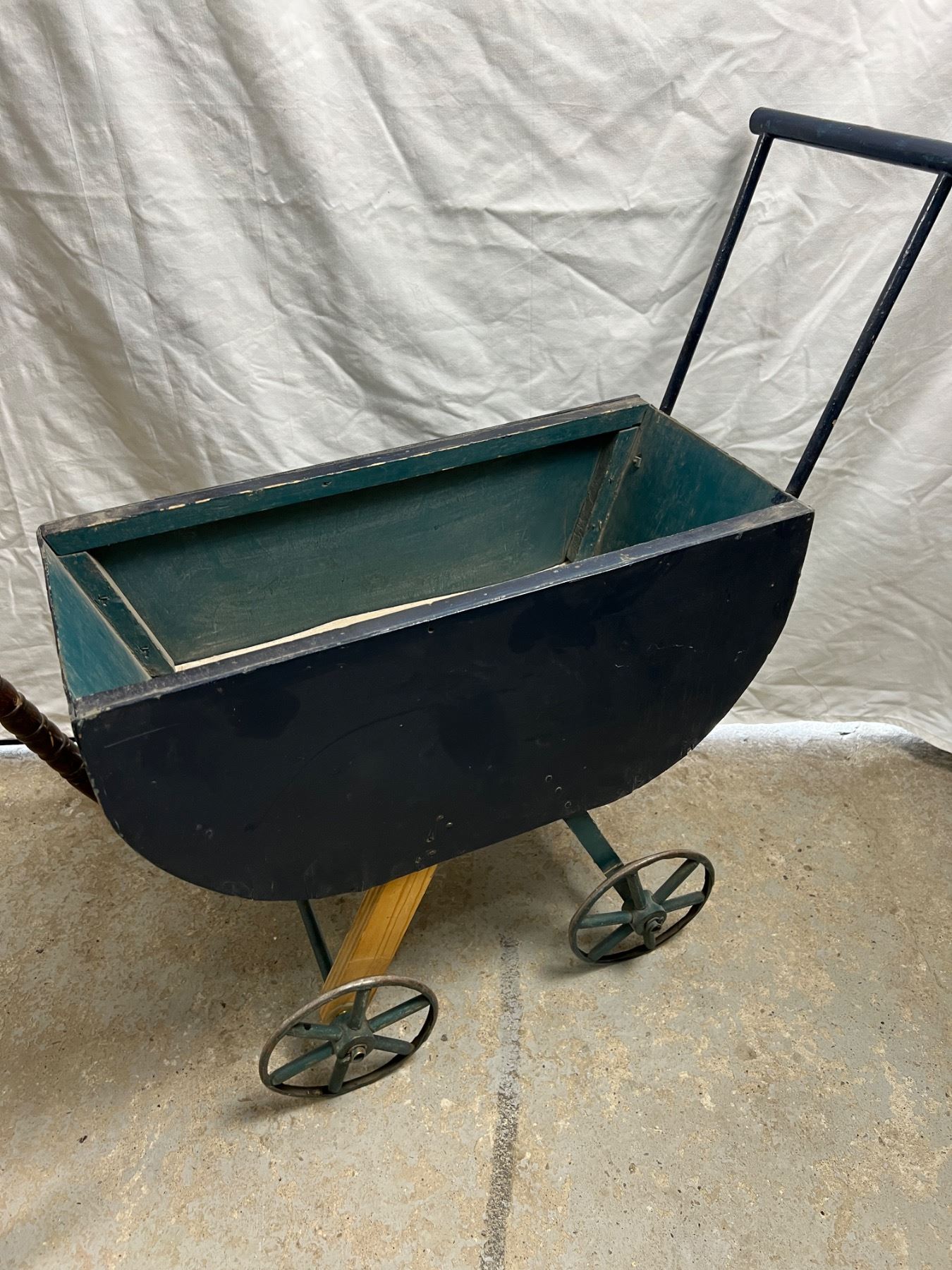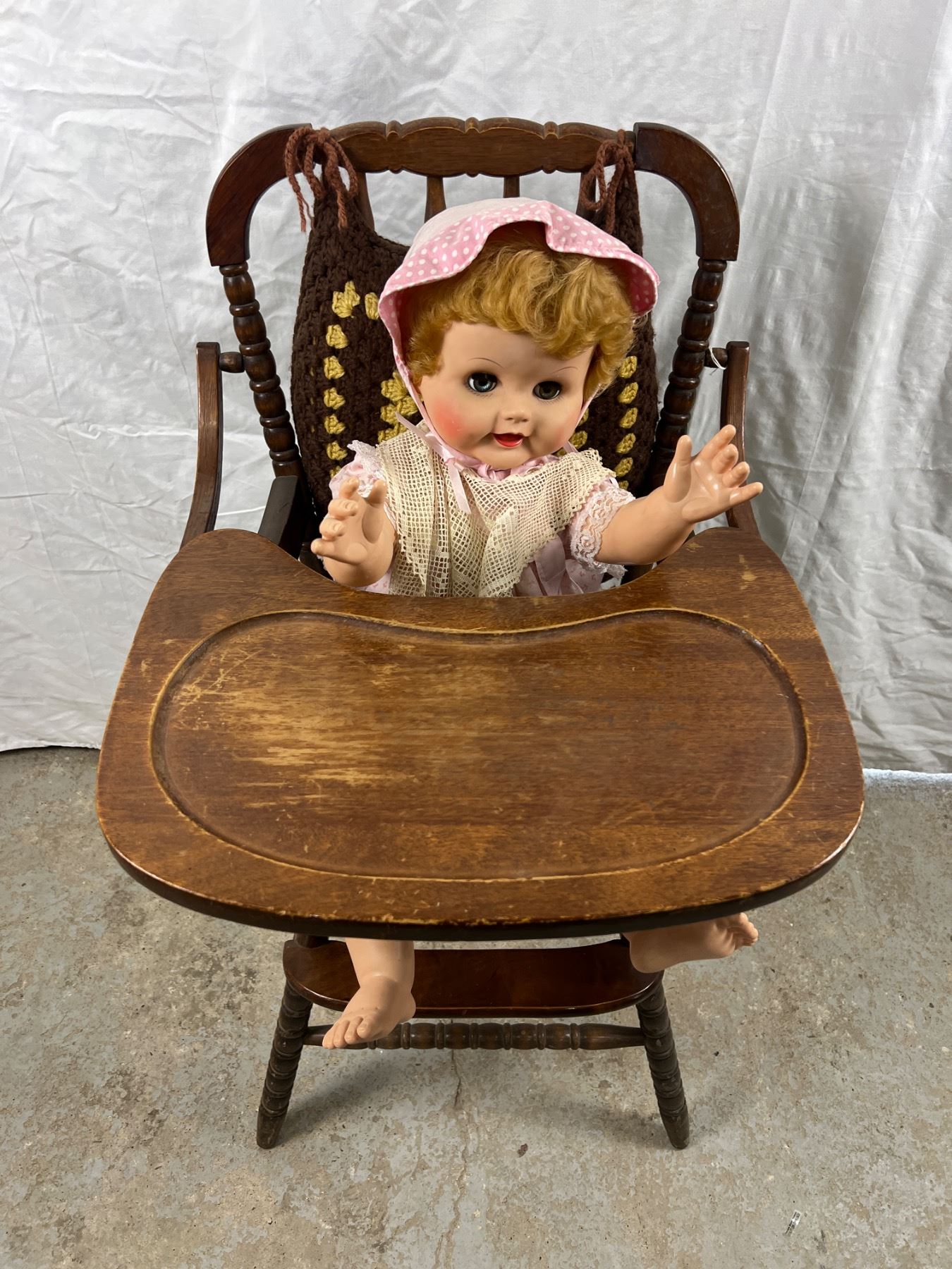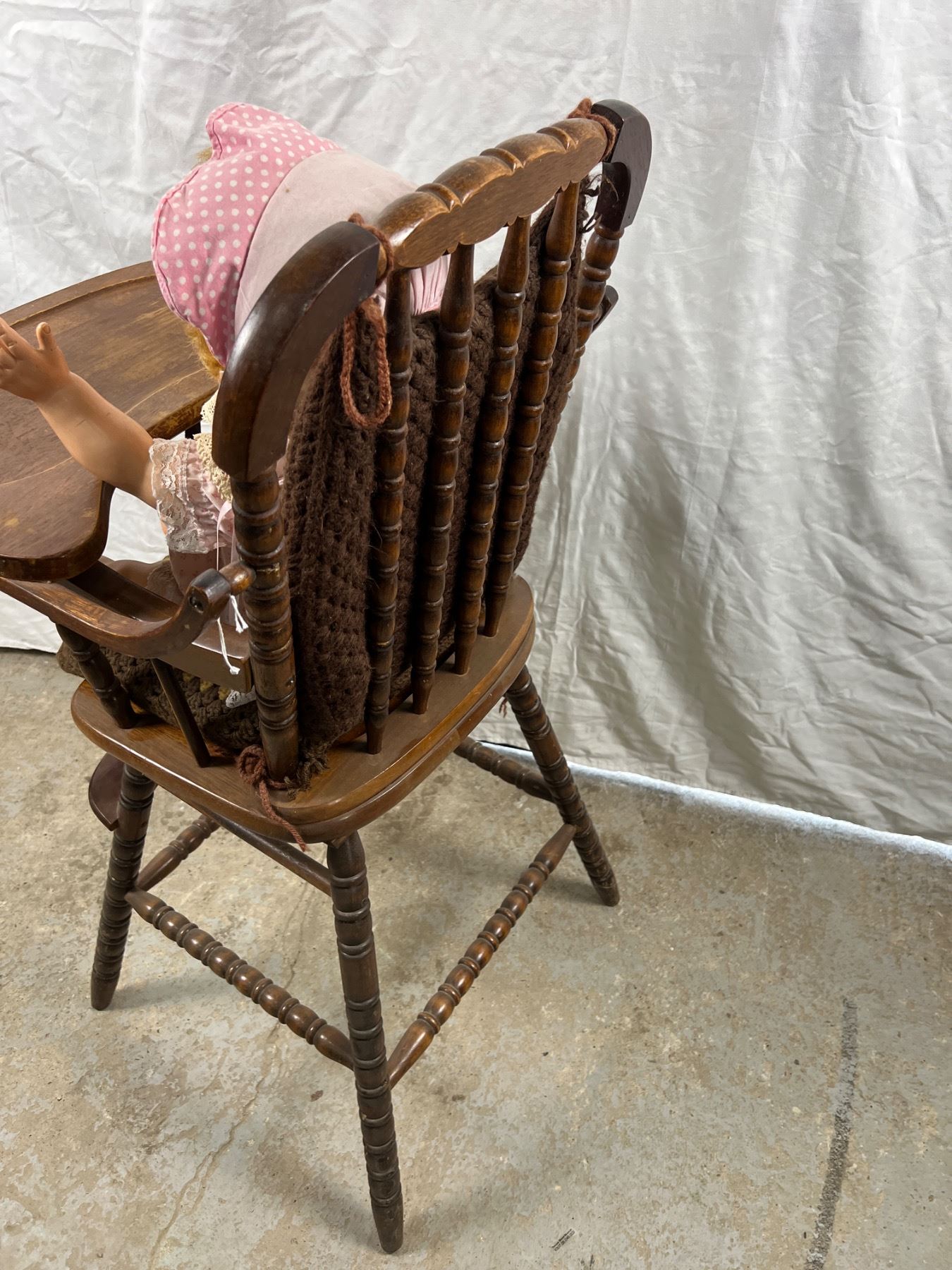 Some wear and tear, the high chair is 20"L x 19"W x 40"H, the stroller is 21"L x 9"W x 27"H