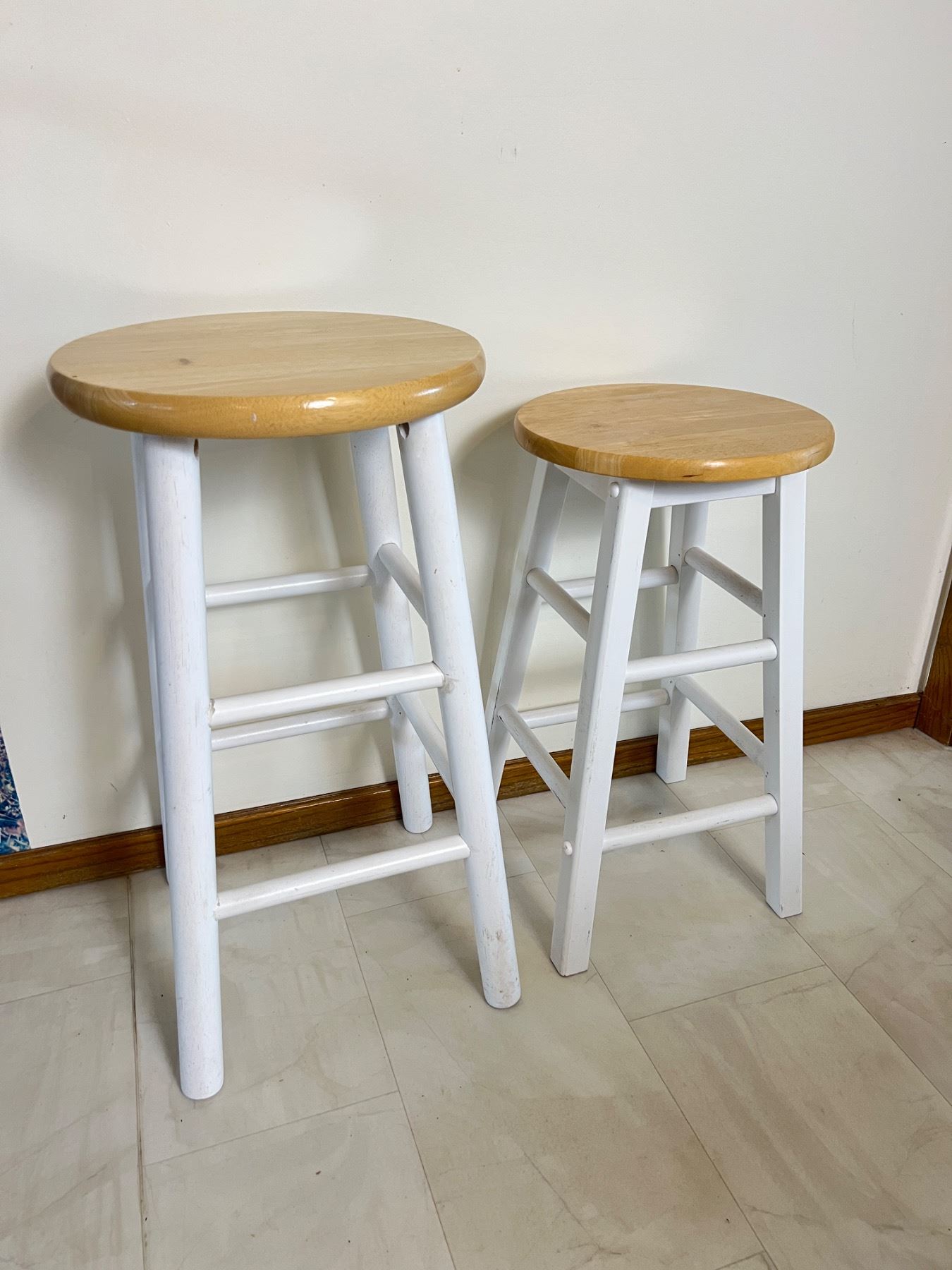 Some scuffs and wear, The taller stool is 25"L and the smaller stool is 21"H