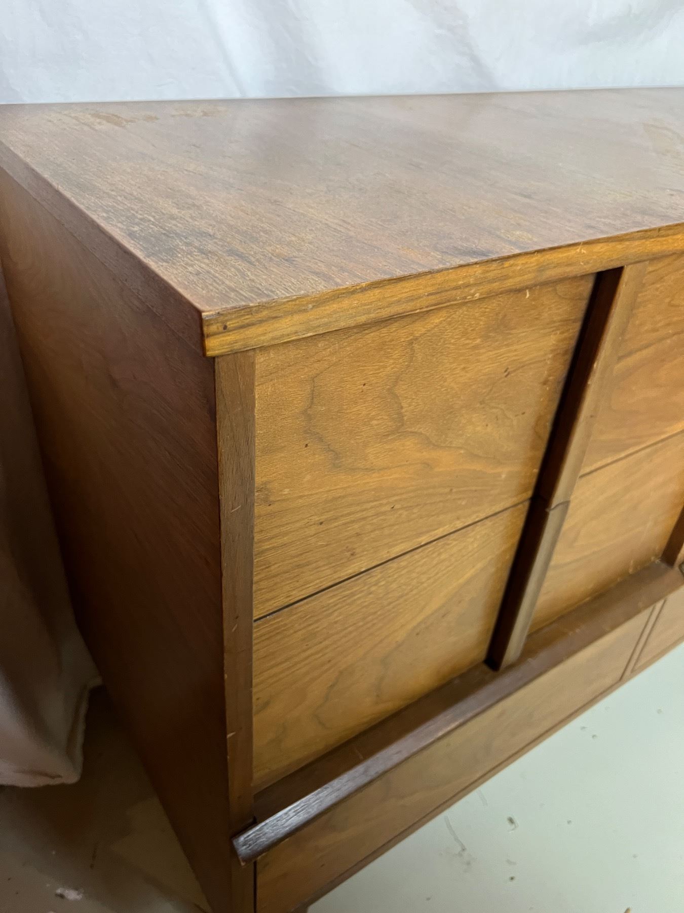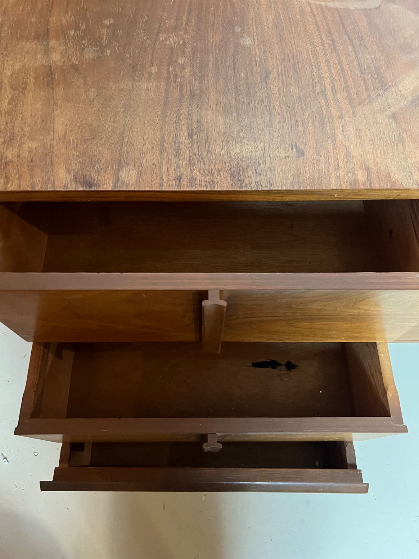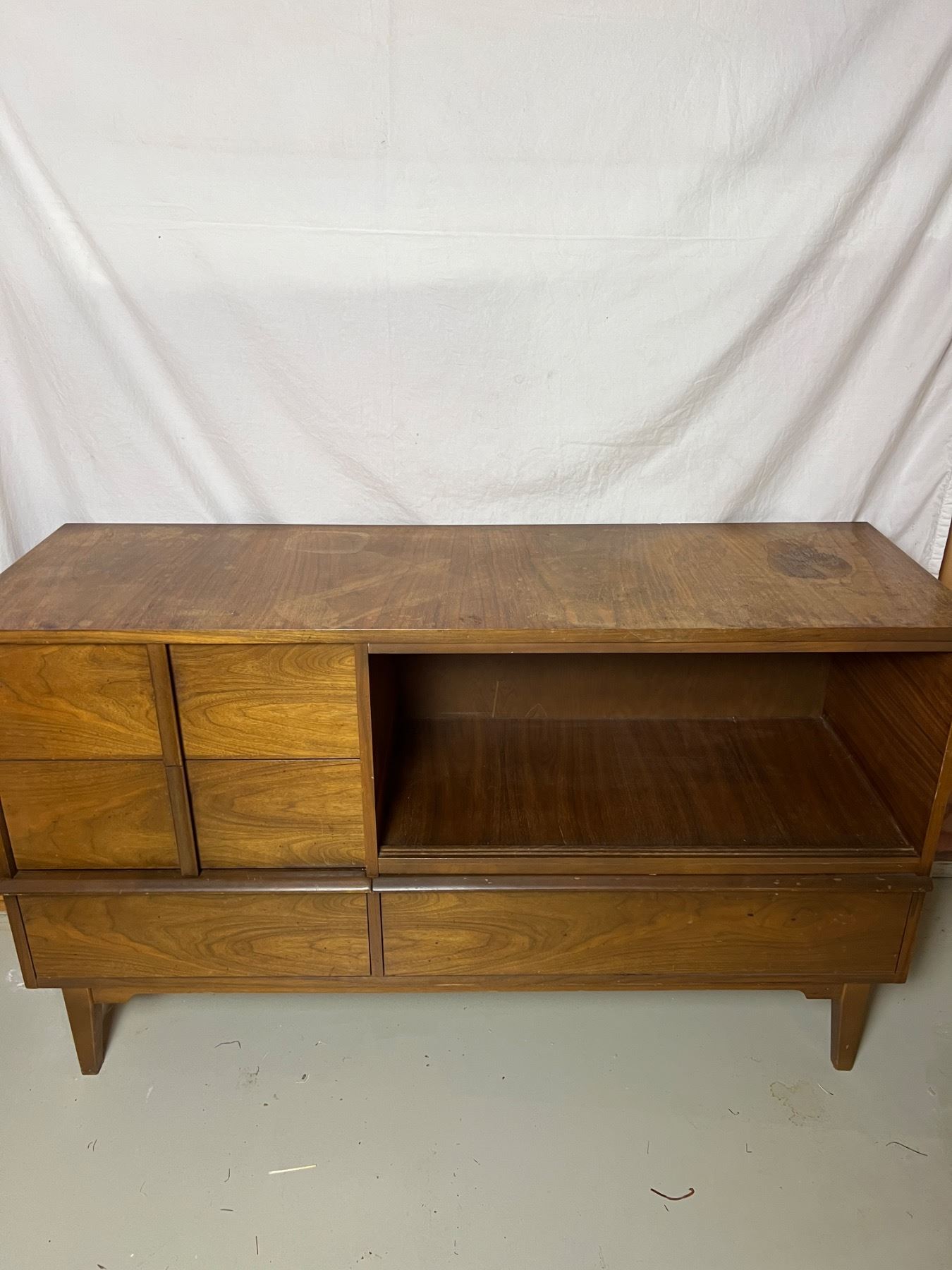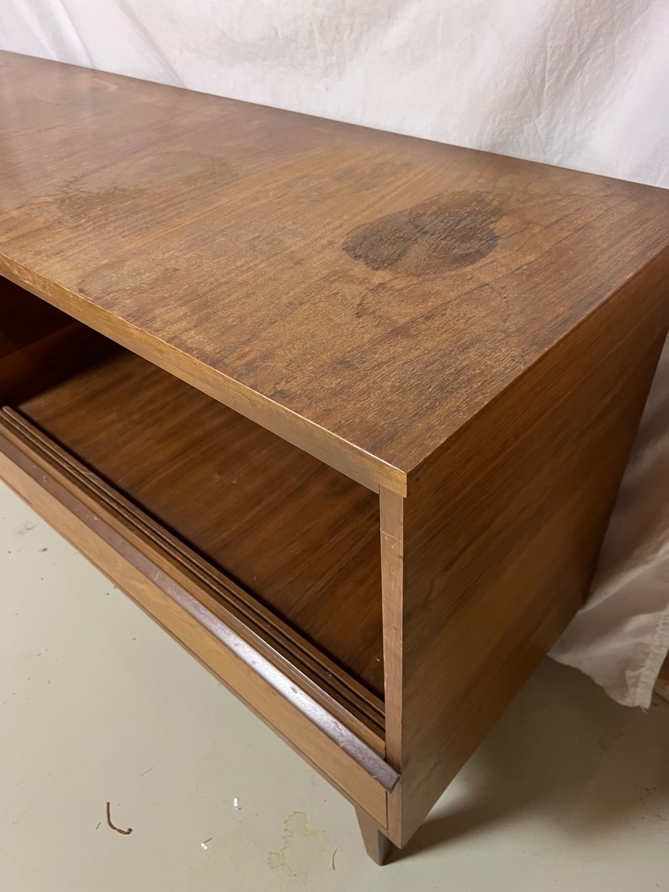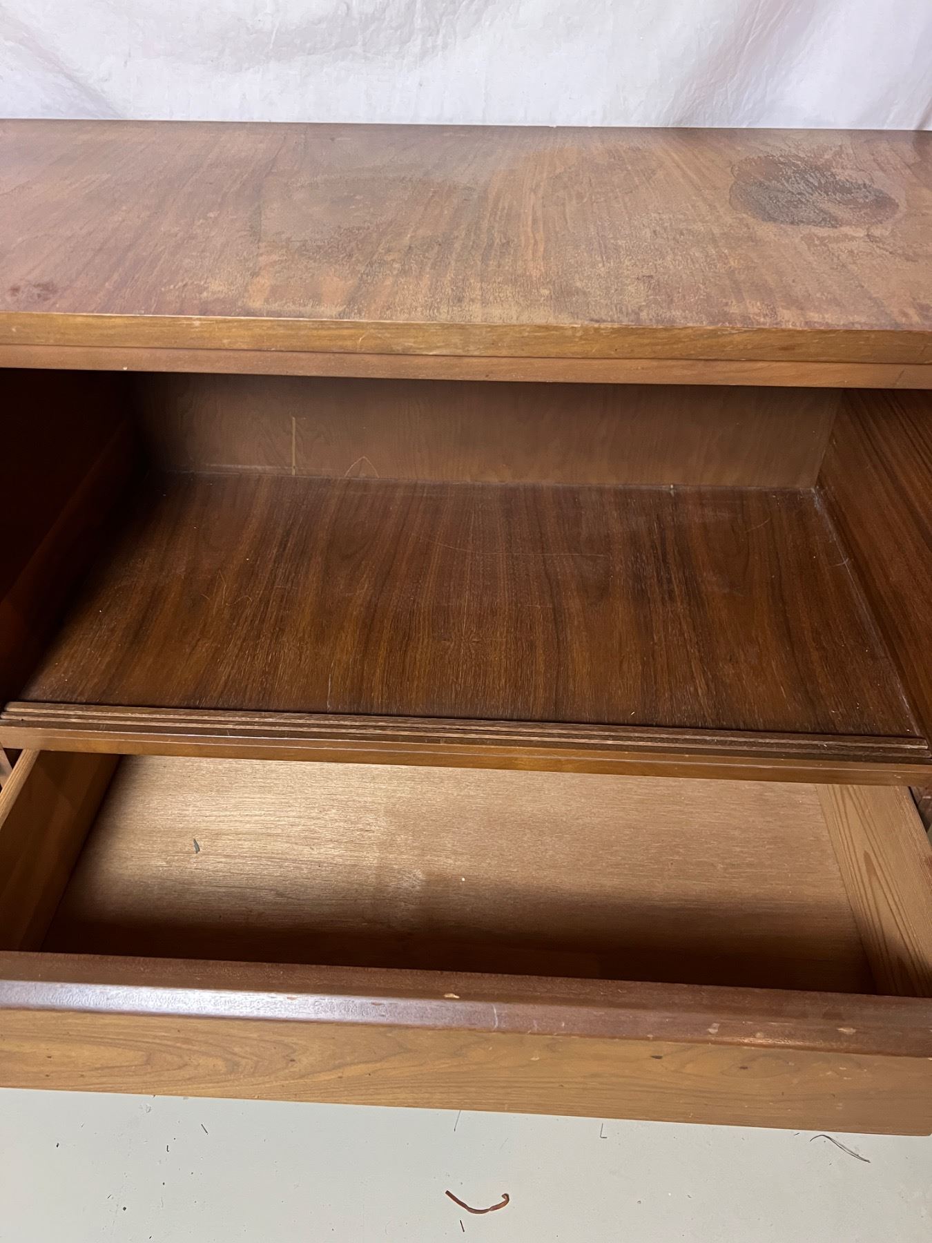 Has some watermarks and wear, four drawers, measures 54"L x 18"W x 32"H