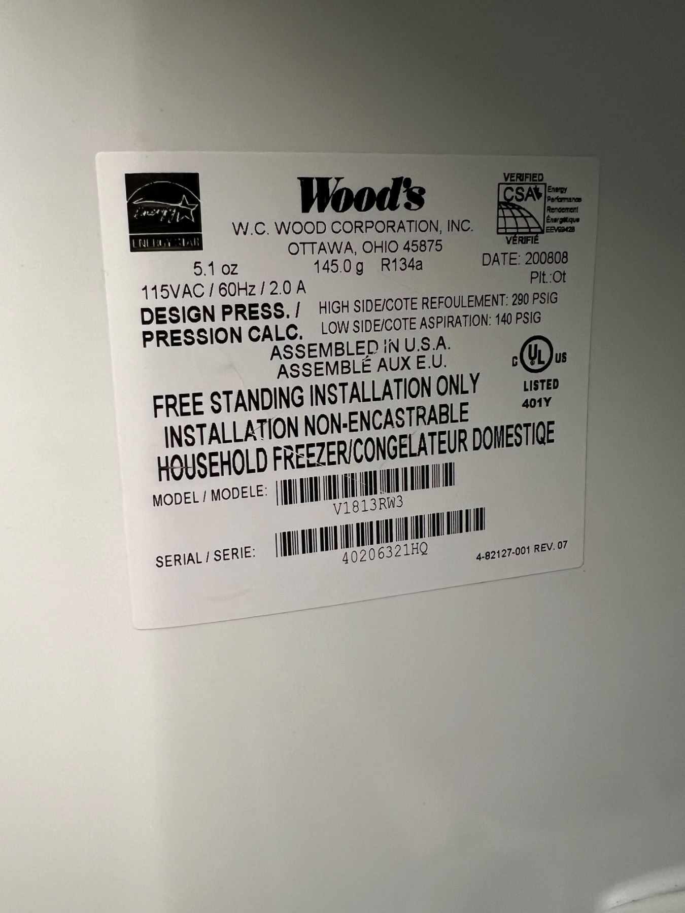 In working condition, measures 30"W x 27.5"D x 57"H, Model No. V1813RW3, no key
