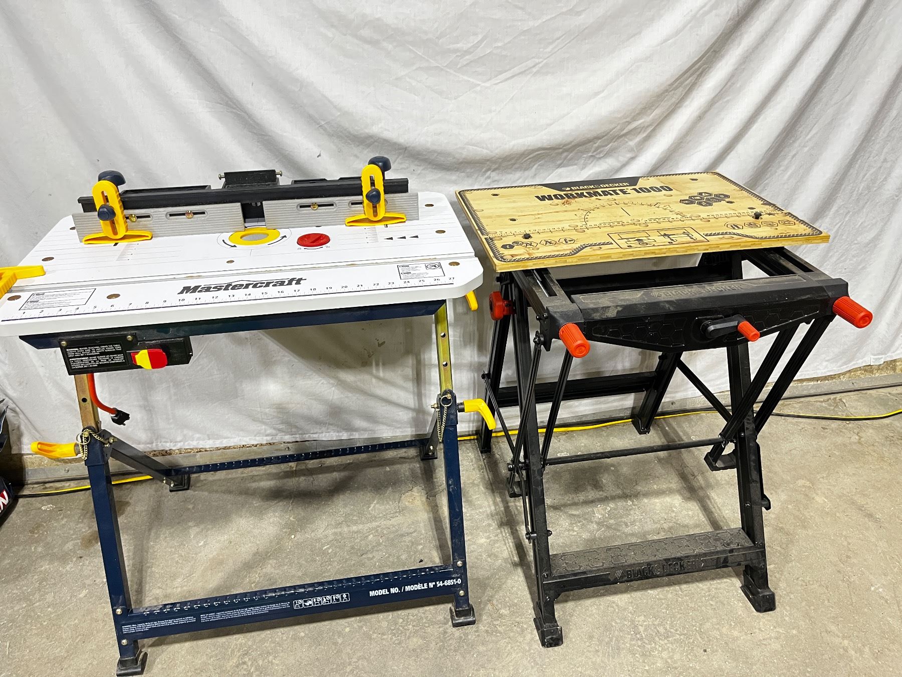 2 in total including Black & Decker Workmate 1000: 27" long x 18" wide - Mastercraft No. 54-6851-0: 34" long x 20" wide