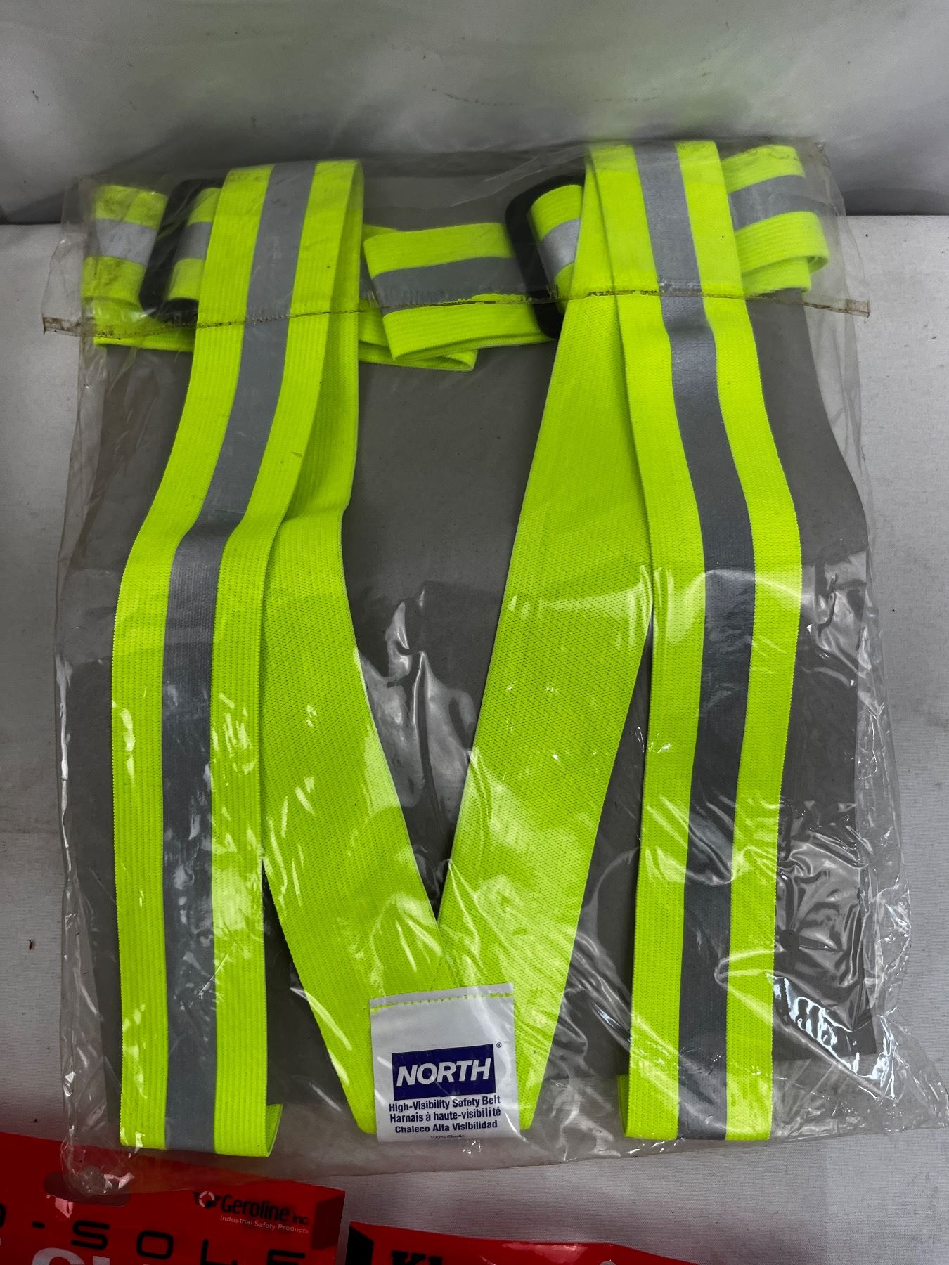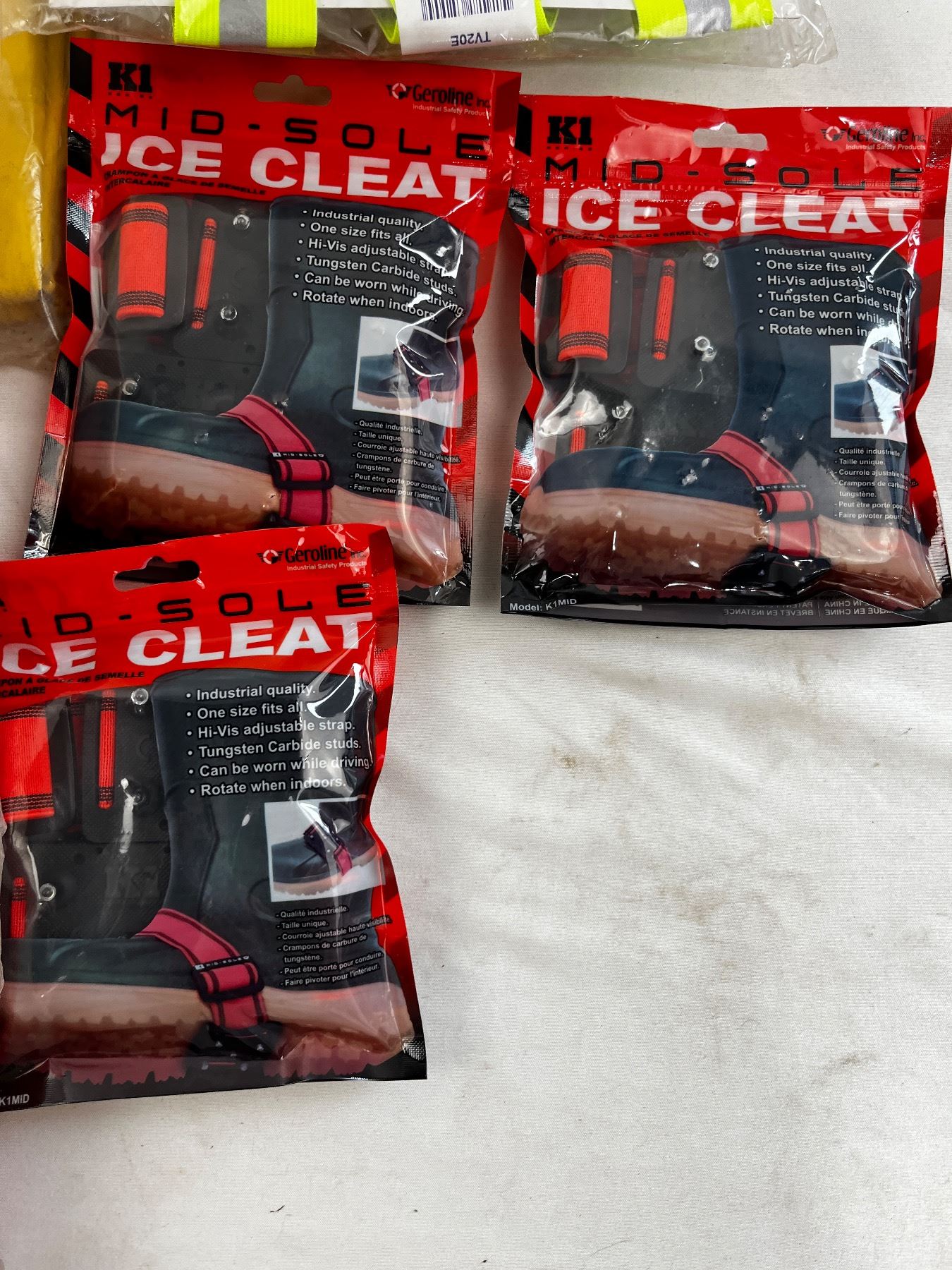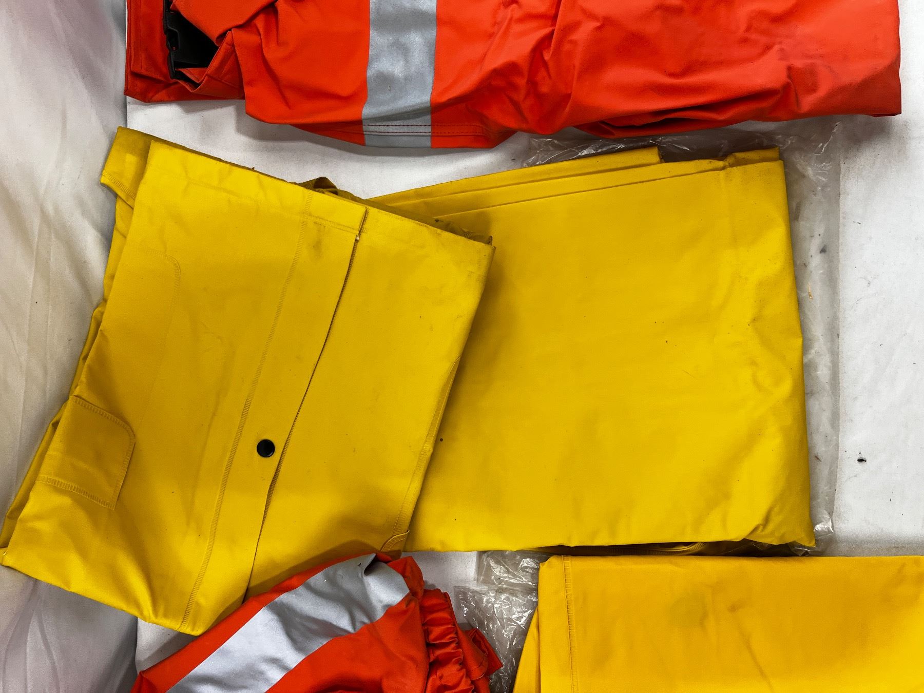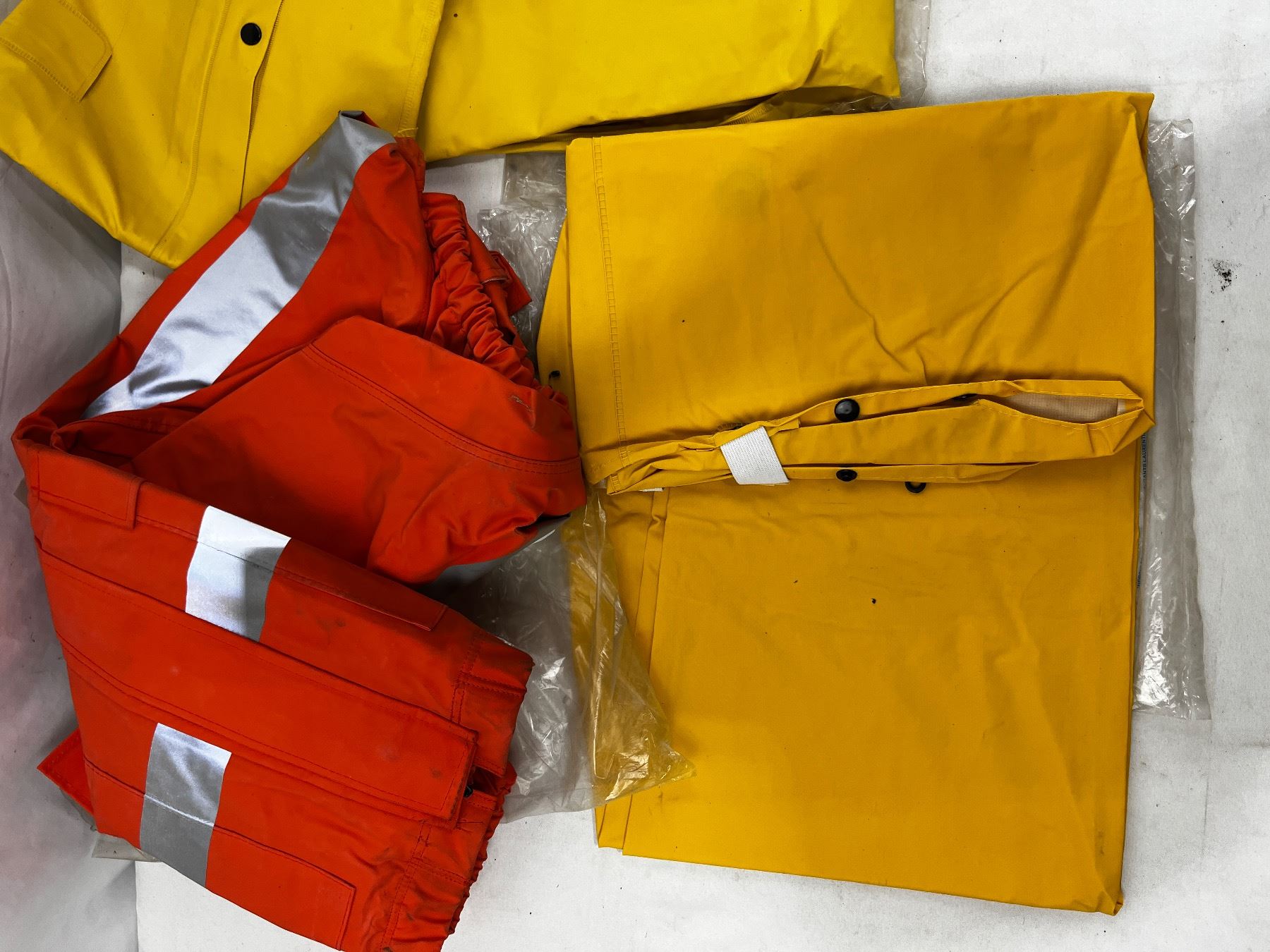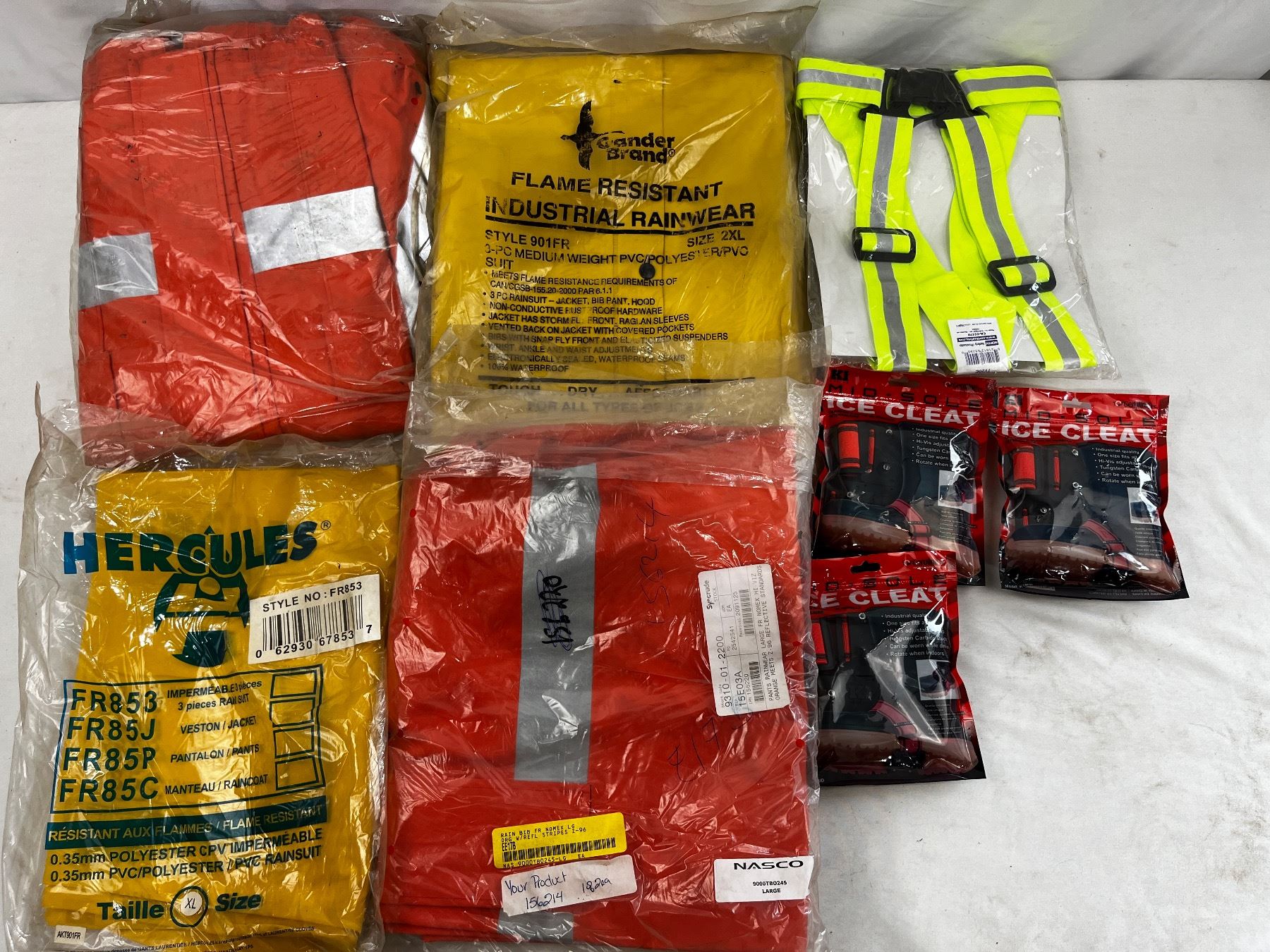Includes, Ice Cleats, Hi Vis Safety Belt, Lg Orange Rainwear pants, Lg Orange Rainwear jacket, Xl Hercules pants, 2Xl Gander Flame Resistant Rainwear