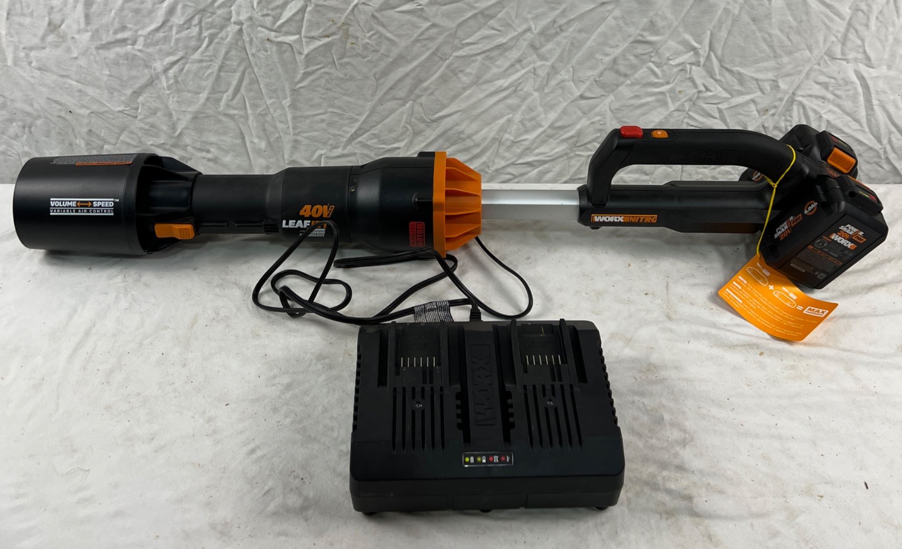 Powers on and all speed modes work. Charger and batteries both working as well.