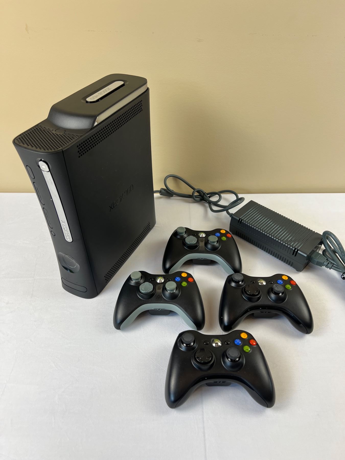 Console powers on, includes four remotes (not tested)