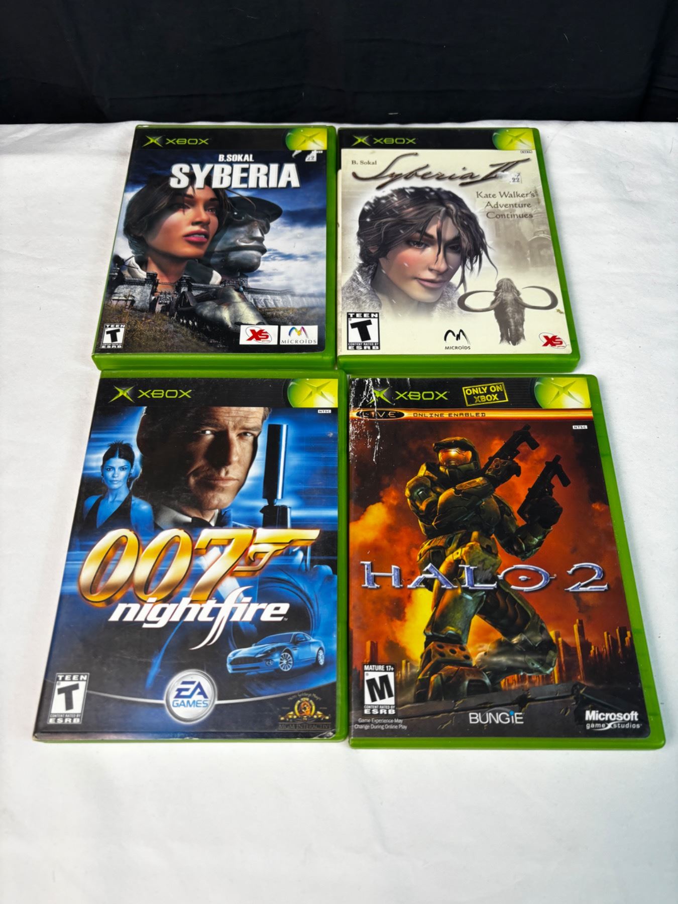 Includes four used games, Titles include, Syberia II, Halo 2, 007 Nightfire, Syberia
