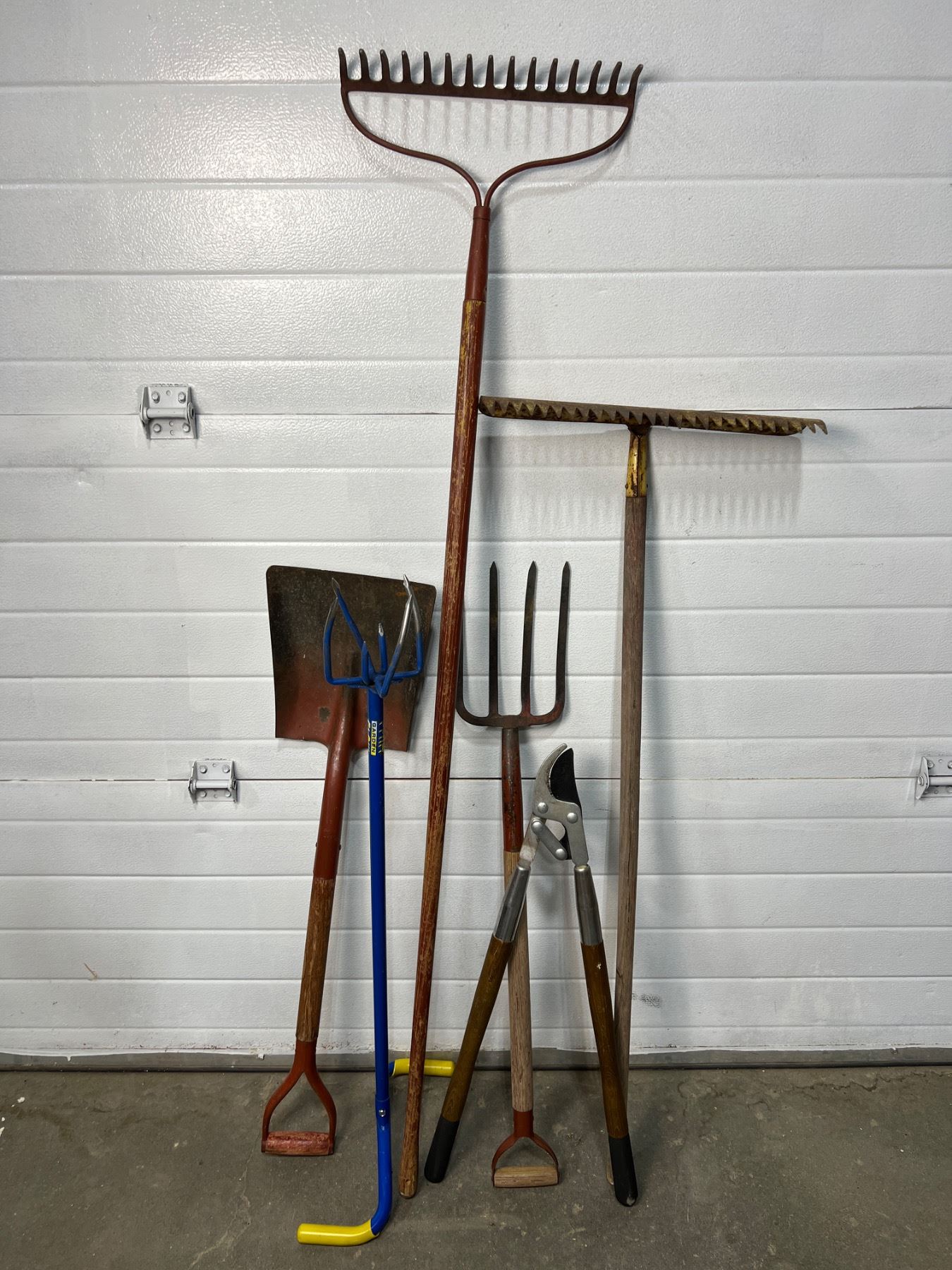 Largest rake blade is 18" wide and 6" tall. Rust and wear vary.