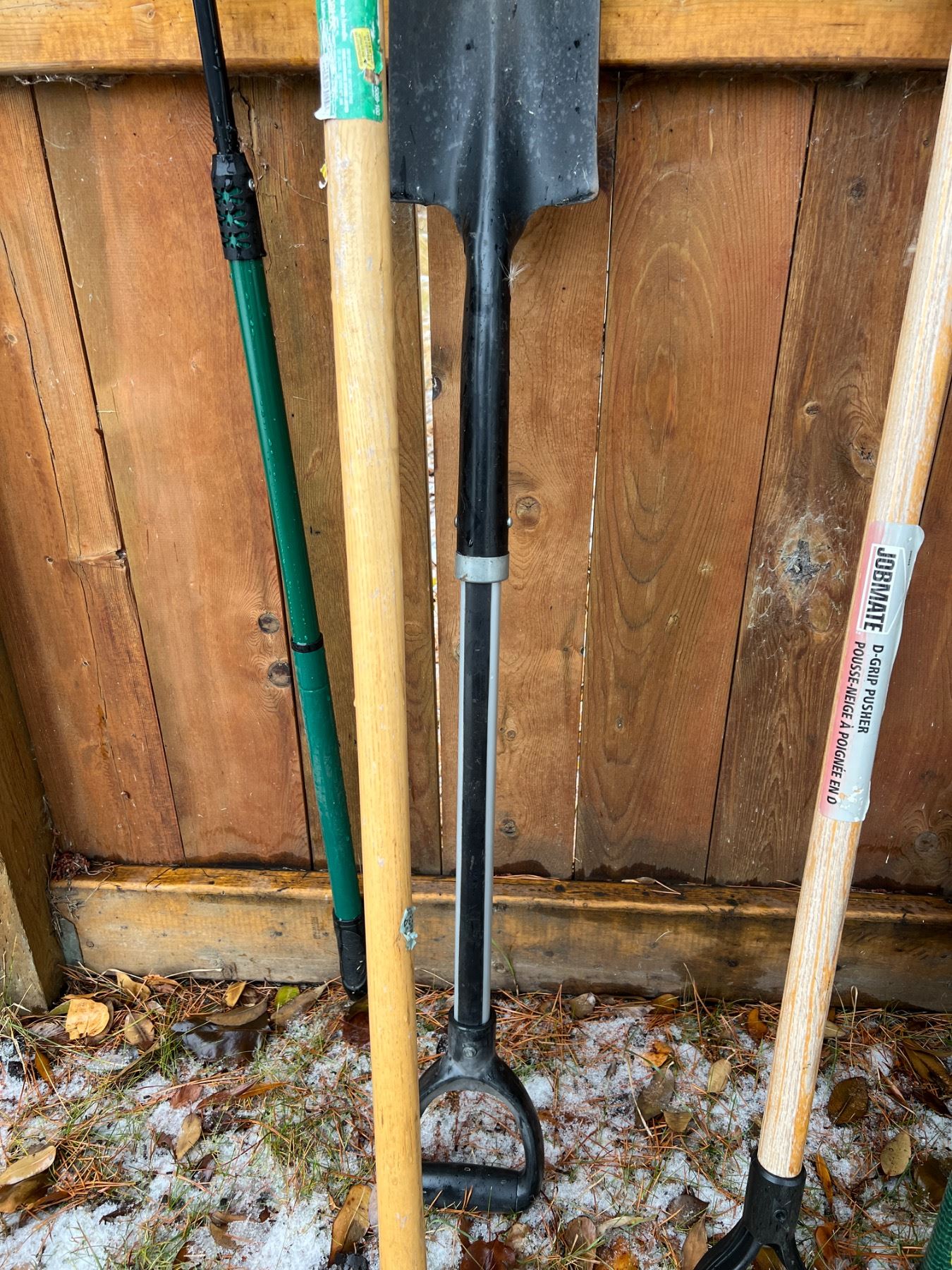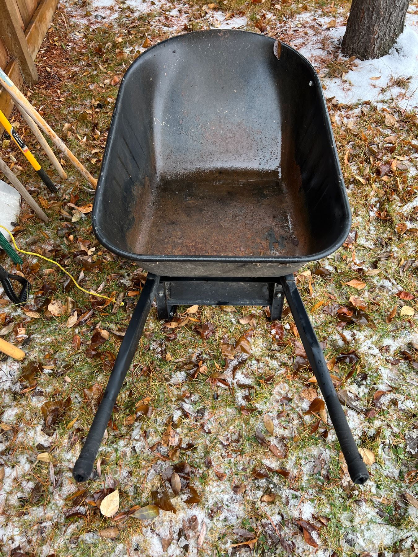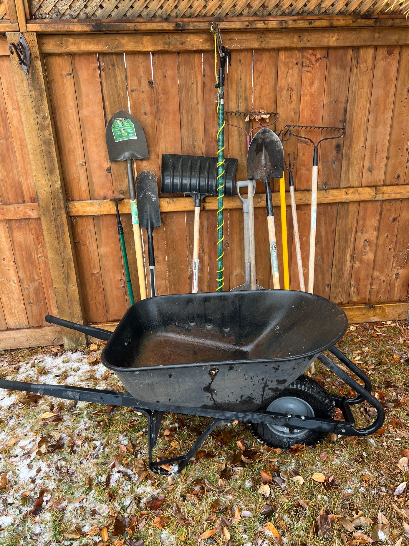 Rust to barrow and some shovel heads. Tall pole is 75" long.
