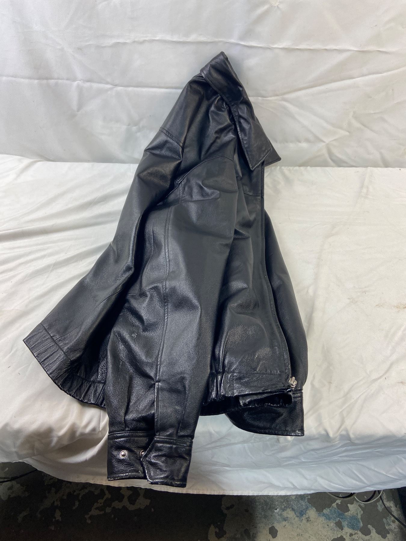 used, 2 XL Tall Leather Jacket by Harbor Bay, shell 100% leather, Lining 50% Nylon 50% Polyester